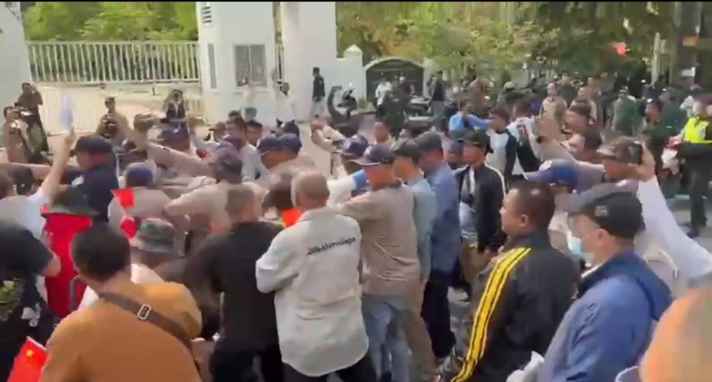 អតិថិជនក្រុមហ៊ុនជនជាតិចិន បានបង្កភាពអនាធិបតេយ្យ បិទផ្លូវសាធារណៈ នៅមុខធនាគារជាតិ ប្រើប្រាស់អំពើហិង្សា វាយលើអាជ្ញាធរមានសមត្ថកិច្ចខណៈចុះអន្តរាគមបើកផ្លូវ