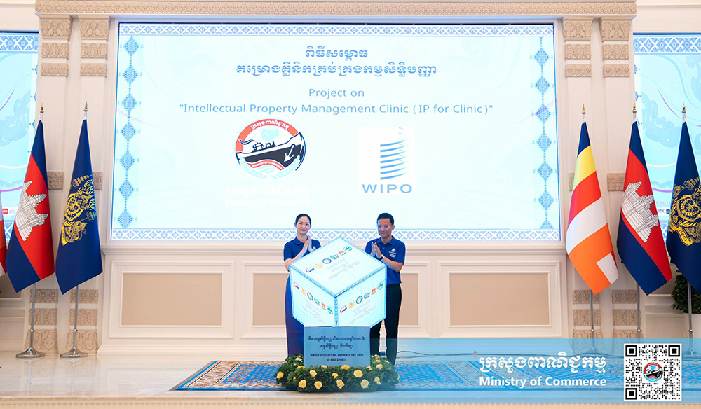 លោកជំទាវ ចម និម្មល រដ្ឋមន្ត្រីក្រសួងពាណិជ្ជកម្ម និងឯកឧត្តម ហែម វណ្ណឌី រដ្ឋមន្ត្រីក្រសួងឧស្សាហកម្ម វិទ្យាសាស្ត្រ បច្ចេកវិទ្យា និងនវានុវត្តន៍ អញ្ជើញជាអធិបតី ពិធីបើកទិវាកម្មសិទ្ធិបញ្ញាពិភពលោក ឆ្នាំ២០២៦ ក្រោមមូលបទ "កម្មសិទ្ធិបញ្ញា និងកីឡា” និងពិធីសម្ពោធគម្រោងកម្មសិទ្ធិបញ្ញា ព្រមទាំងពិធីតាំងពិព័រណ៍ផលិតផល ម៉ាកសម្គាល់ភូមិសាស្រ្តទំនិញ ម៉ាកសមូហភាព និងស្នាដៃចំណេះដឹងប្រពៃណី និងវិញ្ញត្តវប្បធម៌ជាប្រពៃណី នាព្រឹកថ្ងៃទី២៨ ខែមេសា ឆ្នាំ២០២៦ នៅទីស្តីការក្រសួងពាណិជ្ជកម្ម រាជធានីភ្នំពេញ។