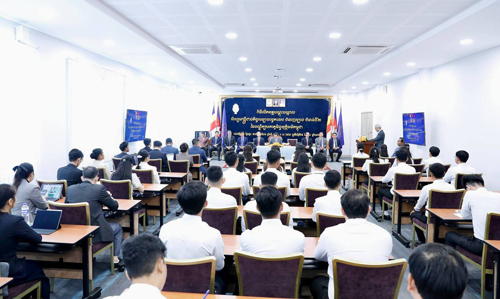 ឯកឧត្តម កើត រិទ្ធ ឧបនាយករដ្ឋមន្ត្រី រដ្ឋមន្ត្រីក្រសួងយុត្តិធម៌ និងជាប្រធានក្រុមប្រឹក្សាភិបាលនៃបណ្ឌិត្យសភាភូមិន្ទយុត្តិធម៌កម្ពុជា អញ្ជើញបើកវគ្គបណ្ដុះបណ្ដាលមន្ត្រីជាប់កិច្ចសន្យាបច្ចេកទេស ជំនាញច្បាប់ ជំនាន់ទី២ នៃបណ្ឌិត្យសភាភូមិន្ទយុត្តិធម៌កម្ពុជា នាព្រឹកថ្ងៃទី២៨ ខែមេសា ឆ្នាំ២០២៦ នៅភ្នំពេញ។