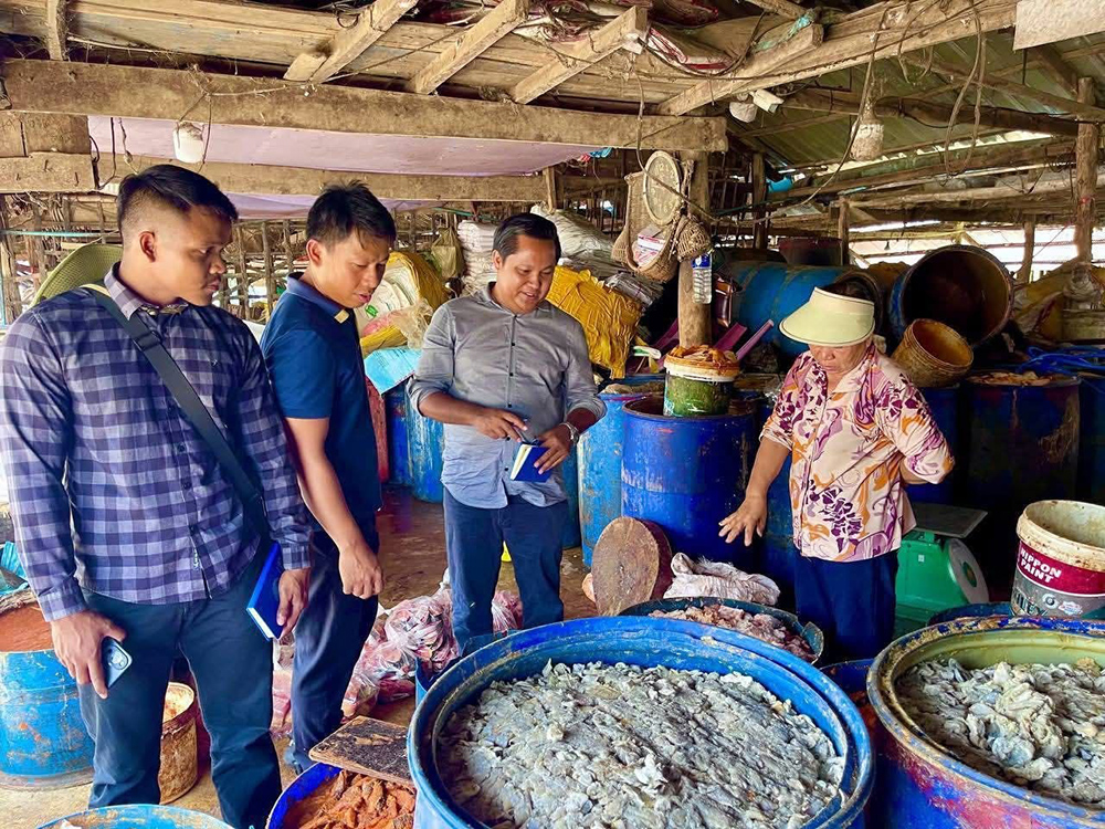 ក្រុមការងារត្រួតពិនិត្យការធ្វើអាជីវកម្មលើធនធានធម្មជាតិ របស់ អាជ្ញាធរទន្លេសាប ត្រួតពិនិត្យការធ្វើអាជីវកម្ម វាយតម្លៃពីការកែច្នៃត្រី នៅស្រុកឯកភ្នំ