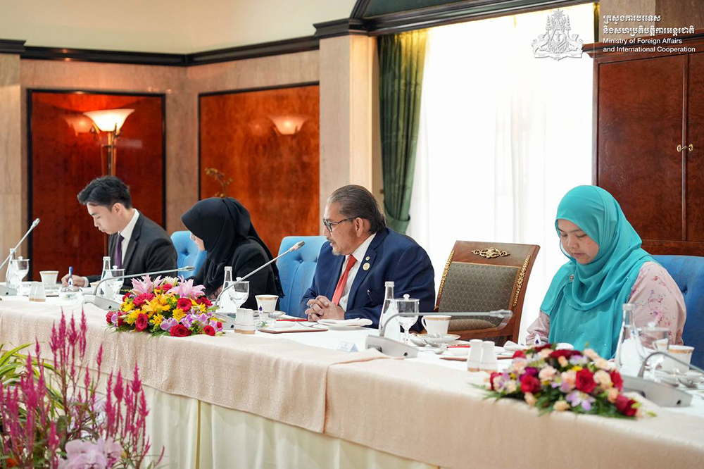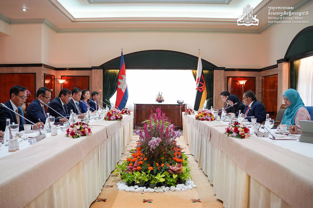 ឯកឧត្តមឧបនាយករដ្ឋមន្ត្រី ប្រាក់ សុខុន រដ្ឋមន្ត្រីការបរទេស និងសហប្រតិបត្តិការអន្តរជាតិ អញ្ជើញជួបពិភាក្សាការងារទ្វេភាគីជាមួយ ឯកឧត្តម អ៊ីរីវ៉ាន់ ពើហ៊ីន យូសូហ្វ (Dato Erywan Pehin Yusof) រដ្ឋមន្ដ្រីការបរទេសទីពីរ នៃប្រទេសព្រុយណេដារូស្សាឡាម នាព្រឹកថ្ងៃទី២៩ ខែមេសា ឆ្នាំ២០២៦ ក្នុងឱកាសដែលឯកឧត្តមឧបនាយករដ្ឋមន្ត្រី បំពេញទស្សនកិច្ចផ្លូវការរយៈពេល២ថ្ងៃ នៅប្រទេសព្រុយណេដារូស្សាឡាម។