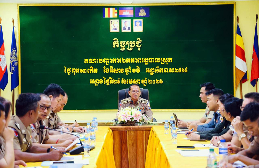AKP កុំពង់ធំ ថ្ងៃទី២៩ ខែមេសា ឆ្នាំ២០២៦--លោកសាយ គឹមឡមអភិបាលស្រុក និងជាប្រធានគណៈបញ្ជាការឯកភាពរដ្ឋបាលស្រុកស្ទោងបានបញ្ជាដល់កងកម្លាំងមានសមត្ថកិច្ច និងអាជ្ញាធរពាក់ព័ន្ធ ត្រូវគ្រប់គ្រង ទប់ស្កាត់បទល្មើសឆបោកតាមប្រព័ន្ធបច្ចេកវិទ្យា(scam online)និងជនបរទេសដែលស្នាក់នៅ និងប្រកបអាជីវកម្មខុសច្បាប់នៅក្នុងមូលដ្ឋានស្រុកស្ទោងឱ្យខានតែបានក្នុងឱកាសដែលលោកអញ្ជើញដឹកនាំកិច្ចប្រជុំគណៈបញ្ជាការឯកភាពរដ្ឋបាលស្រុកស្ទោងប្រចាំខែមេសា នាព្រឹកថ្ងៃទី ២៩ ខែមេសា ឆ្នាំ២០២៦ នៅអគាររដ្ឋបាលស្រុកស្ទោង។