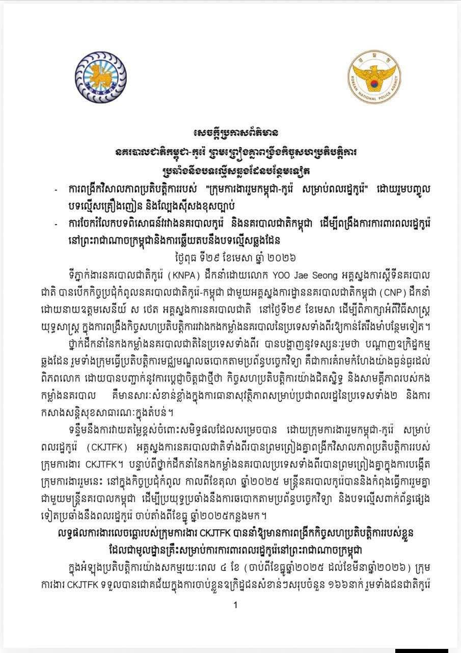 ឯកឧត្តម សុខ លូ ជួបពិភាក្សាជាមួយ ឯកអគ្គរដ្ឋទូតសាធារណរដ្ឋកូរ៉េ ស្តីពីស្ថានភាពព្រំដែន ការងារបង្រ្កាបបទល្មើស Online Scams និងការពង្រឹងកិច្ចសហប្រតិបត្តិការកម្ពុជា-កូរ៉េ