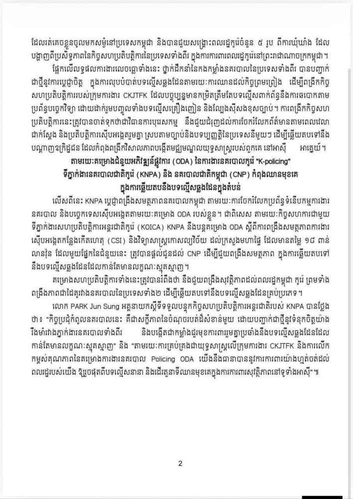 នគរបាលជាតិកម្ពុជា-កូរ៉េ ព្រមព្រៀងគ្នាពង្រឹងកិច្ចសហប្រតិបត្តិការប្រឆាំងនឹងបទល្មើសឆ្លងដែនបន្ថែមទៀត