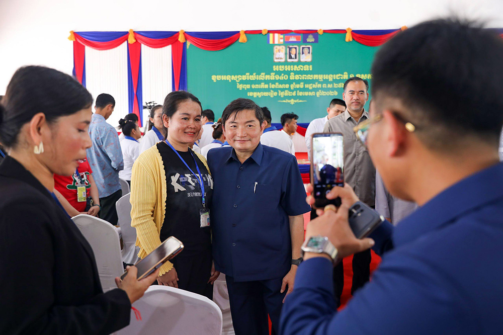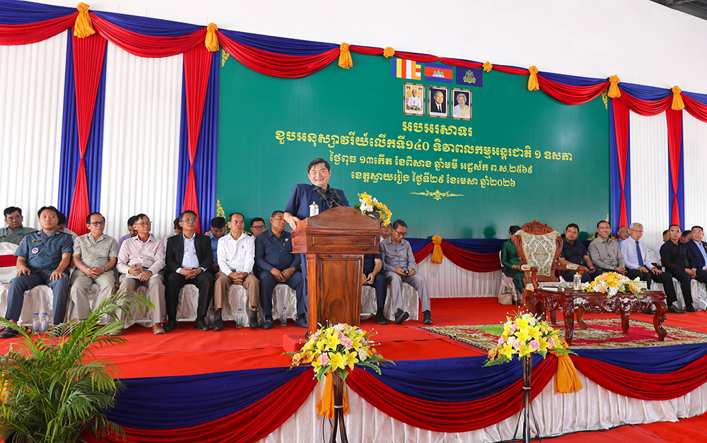 AKP ភ្នំពេញ ថ្ងៃទី២៩ ខែមេសា ឆ្នាំ២០២៦-- ឯកឧត្តម ហេង សួរ រដ្ឋមន្ត្រីក្រសួងការ ងារ និងបណ្តុះបណ្តាលវិជ្ជាជីវៈ បានអញ្ជើញជាអធិបតីភាពដ៏ខ្ពង់ខ្ពស់ក្នុងពិធីអបអរសាទរខួបអនុស្សាវរីយ៍លើកទី១៤០ នៃទិវាពលកម្មអន្តរជាតិ ១ ឧសភា ឆ្នាំ២០២៦ ក្រោមប្រធានបទ «រួមគ្នាកសាងភាពធន់ដើម្បីការងារសមរម្យ» ដែលបានប្រារព្ធឡើងនៅតំបន់សេដ្ឋកិច្ចពិសេសស្វាយរៀង ហ្គីហ្គា រីសស៍ ខេត្តស្វាយរៀង ដែលមានអ្នកចូលរួមប្រមាណជា ១ ៦០០នាក់។