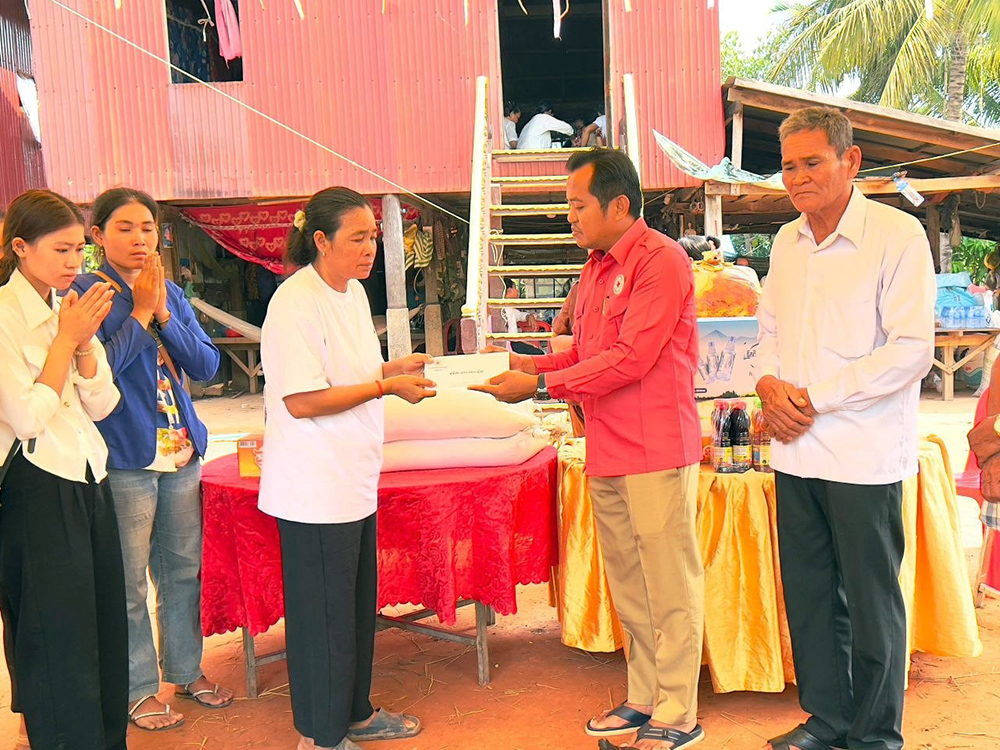 សូមបញ្ជាក់ថា អំណោយដែលបានប្រគល់ជូនគ្រួសារសពរួមមាន៖ អង្ករ៥០គីឡូក្រាម, មី១កេស,ទឹកត្រី០១យួរ, ទឹកស៊ីអ៊ីវ០១យួរនិងថវិការចំនួន៤០ម៉ឺនរៀល៕