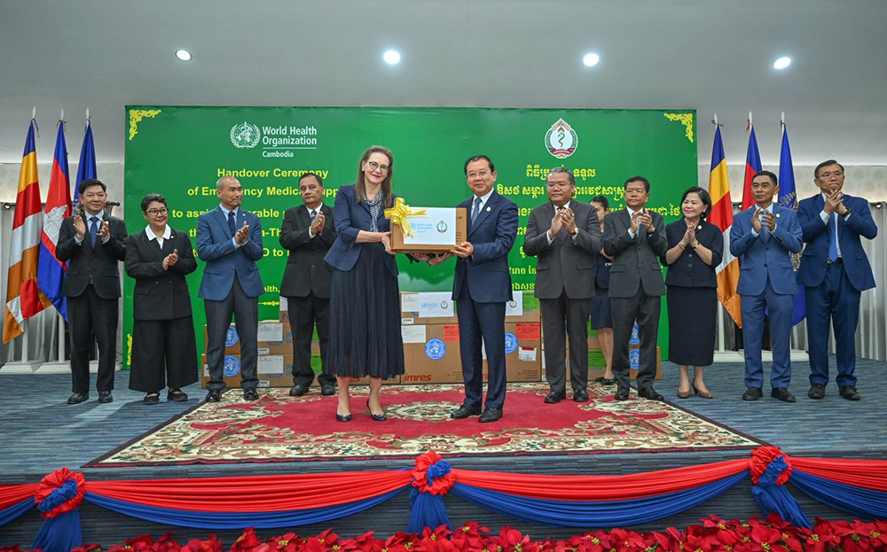 ពិធីប្រគល់-ទទួលឱសថ សម្ភារ និងបរិក្ខារវេជ្ជសាស្រ្ត ដែលជាអំណោយរបស់អង្គការសុខភាពពិភពលោក (WHO) ជូនក្រសួងសុខាភិបាល