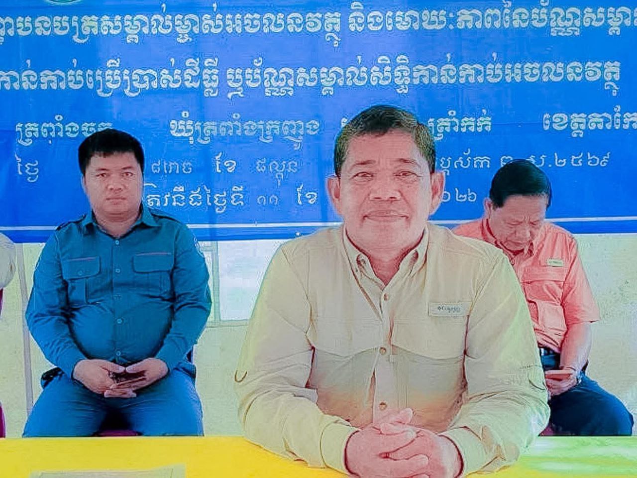 អភិបាលស្រុកត្រាំកក់ចែកបណ្ណសម្គាល់ម្ចាស់អចលនវត្ថុ ចំនួន៩១៦បណ្ណជូនប្រជាពលរដ្ឋ នៅឃុំត្រពាំងក្រញូង