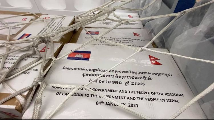 អំណោយមនុស្សធម៌ជាសម្ភារ បរិក្ខារវេជ្ជសាស្ត្ររបស់កម្ពុជា ត្រូវបានប្រគល់ជូនសាធារណរដ្ឋ​ប្រជាធិប​តេយ្យសហព័ន្ធនេប៉ាល់ដើម្បីចូលរួមទប់ស្កាត់ជំងឺកូវីដ-១៩