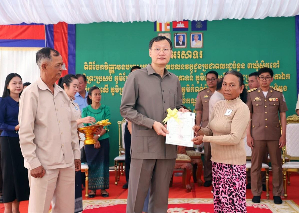 ប្រជាពលរដ្ឋ ចំនួន ១០ភូមិ នៅស្រុកខ្សាច់កណ្តាល ទទួលវិញ្ញាបនបត្រសម្គាល់ម្ចាស់អចលនវត្ថុ