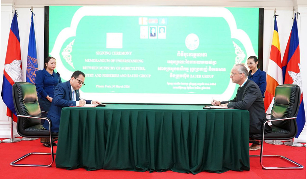 ក្រសួងកសិកម្ម និងក្រុមហ៊ុន BAUER Group ចុះ MoU លើគម្រោងអភិវឌ្ឍន៍ផលិតកម្មដំណាំចំណីសត្វលើផ្ទៃដីកសិកម្មទំហំ ៦០០ហិកតា នៅខេត្តកំពង់ឆ្នាំង