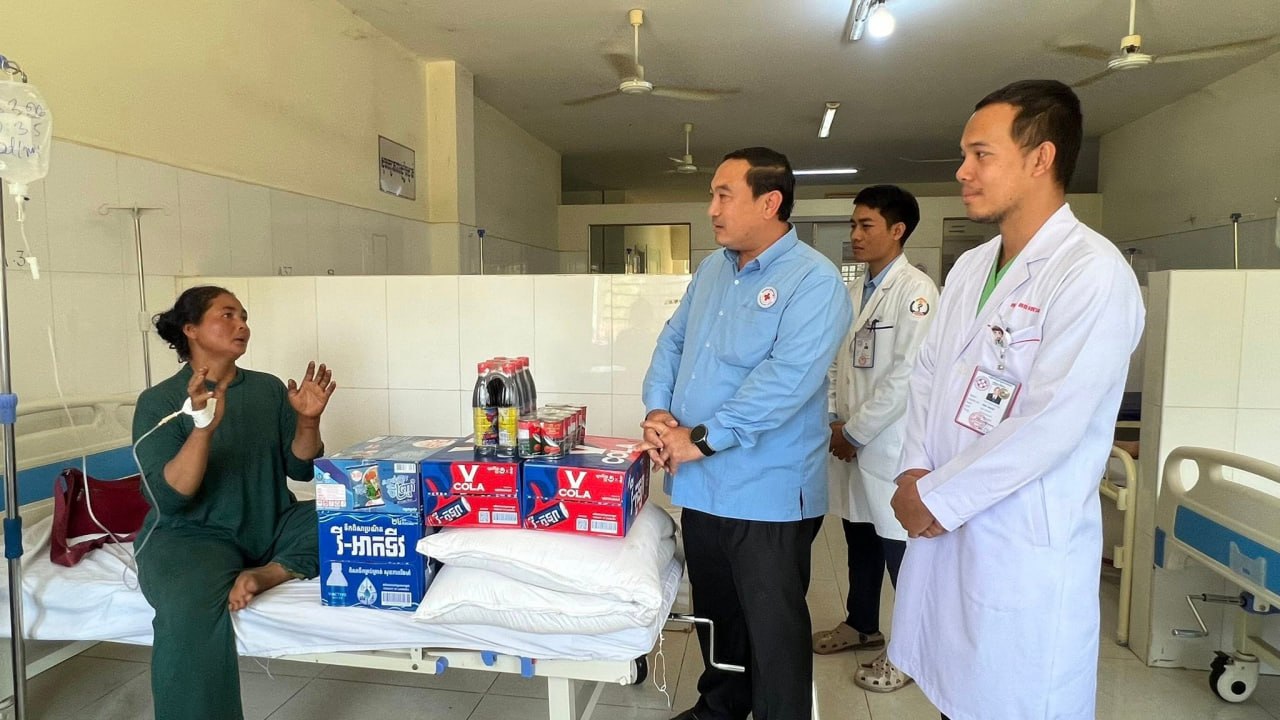 លោក យុង គឹមហ៊ាន ចុះសួរសុខទុក្ខគ្រួសាររងគ្រោះដោយសារឆ្កែចចកខាំរងរបួសដៃ ពីរនាក់ម្តាយកូន កំពុងសម្រាកព្យាបាល នៅមន្ទីរពេទ្យបង្អែកខេត្ត ១៦មករា