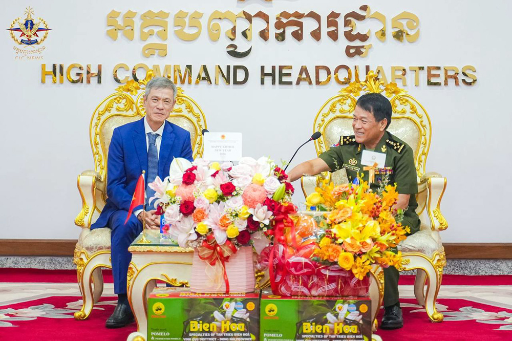 ឯកអគ្គរដ្ឋទូតវៀតណាមប្រចាំកម្ពុជា ជូនពរឯកឧត្តមអគ្គមេបញ្ជាការកងយោធពលខេមរភូមិន្ទ ក្នុងឱកាសបុណ្យចូលឆ្នាំខ្មែរ