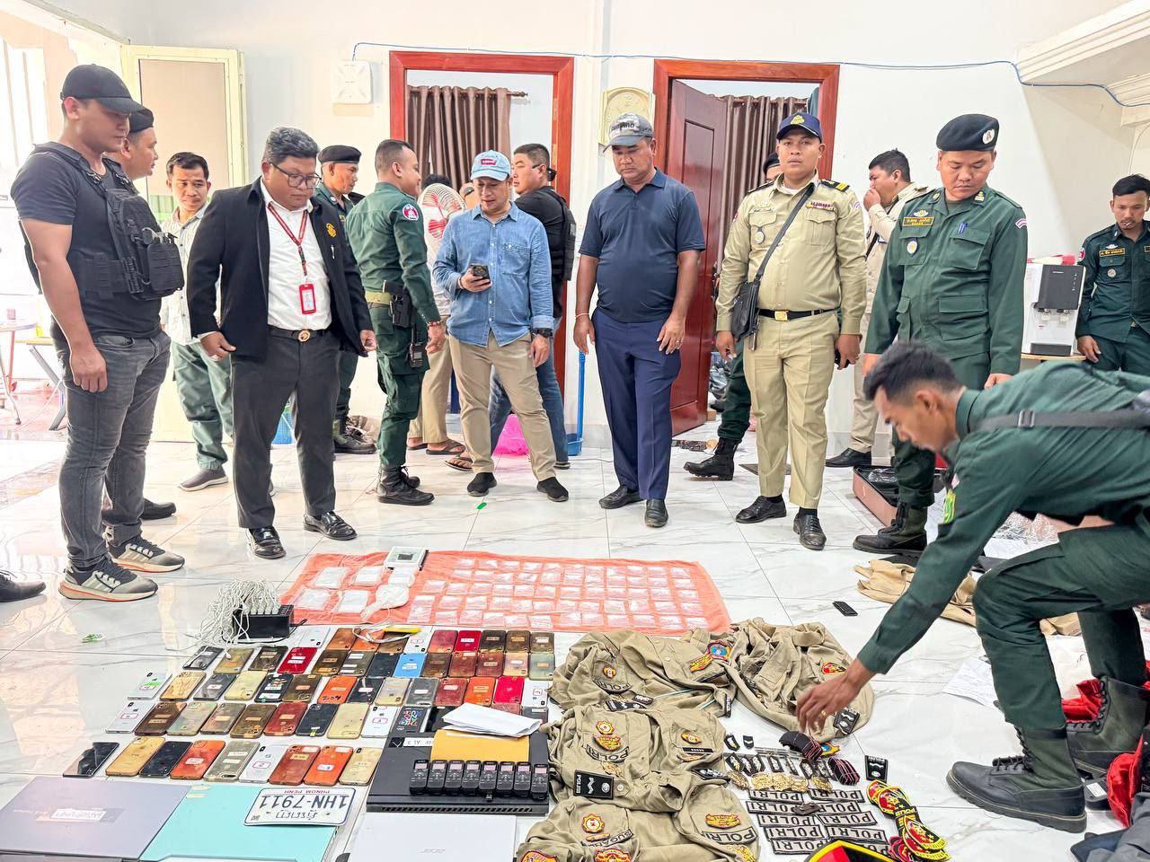 បង្ក្រាបទីតាំង Online Scam នៅកំពង់ស្ពឺ ឃាត់ខ្លួនជនសង្ស័យ៧នាក់ និងថ្នាំញៀនមួយចំនួន