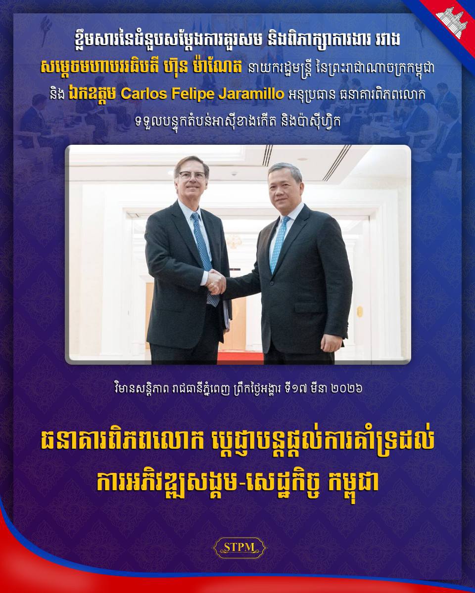 ធនាគារពិភពលោក ប្ដេជ្ញាបន្តផ្ដល់ការគាំទ្រដល់ការអភិវឌ្ឍសង្គម-សេដ្ឋកិច្ច កម្ពុជា