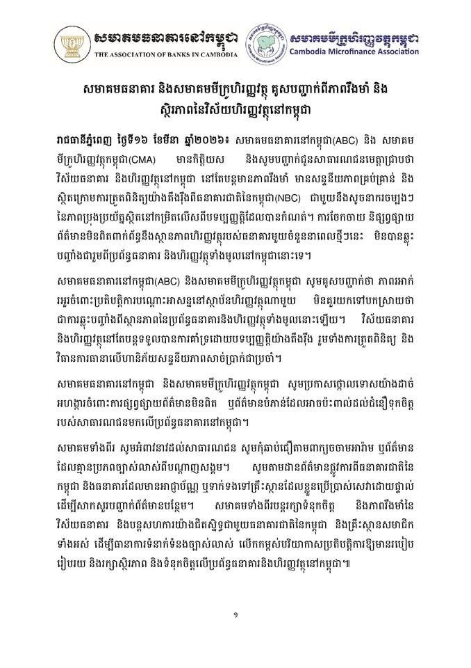 សមាគមធនាគារ និងសមាគមមីក្រូហិរញ្ញវត្ថុ គូសបញ្ជាក់ពីភាពរឹងមាំ និង ស្ថិរភាពនៃវិស័យហិរញ្ញវត្ថុនៅកម្ពុជា