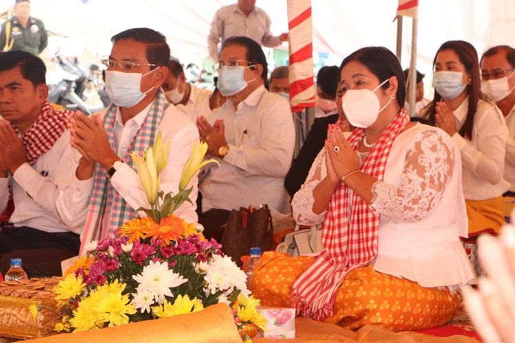 AKP Kampong Chhnang, January 05, 2021— Kampong Chhnang Provincial Governor H.E. Chhour Chandoeun (2nd L, Pic. 1) and his spouse preside over a religious ceremony to inaugurate a new river port at the provincial development area on Jan. 4. Photo: AKP-Kampong Chhnang