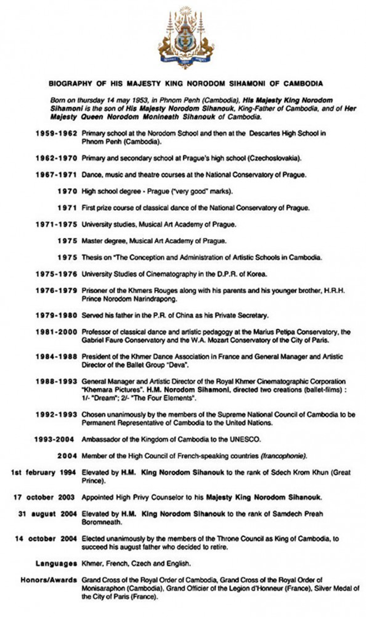 Summary Biography of Samdech Preah Norodom Sihanouk "Preah Borom Ratanak Kaudh"