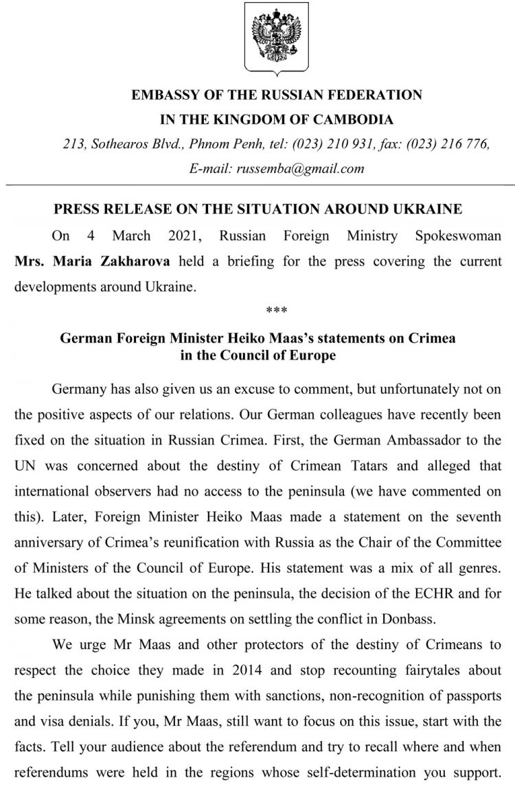German Foreign Minister Heiko Maas’s statements on Crimea in the Council of Europe