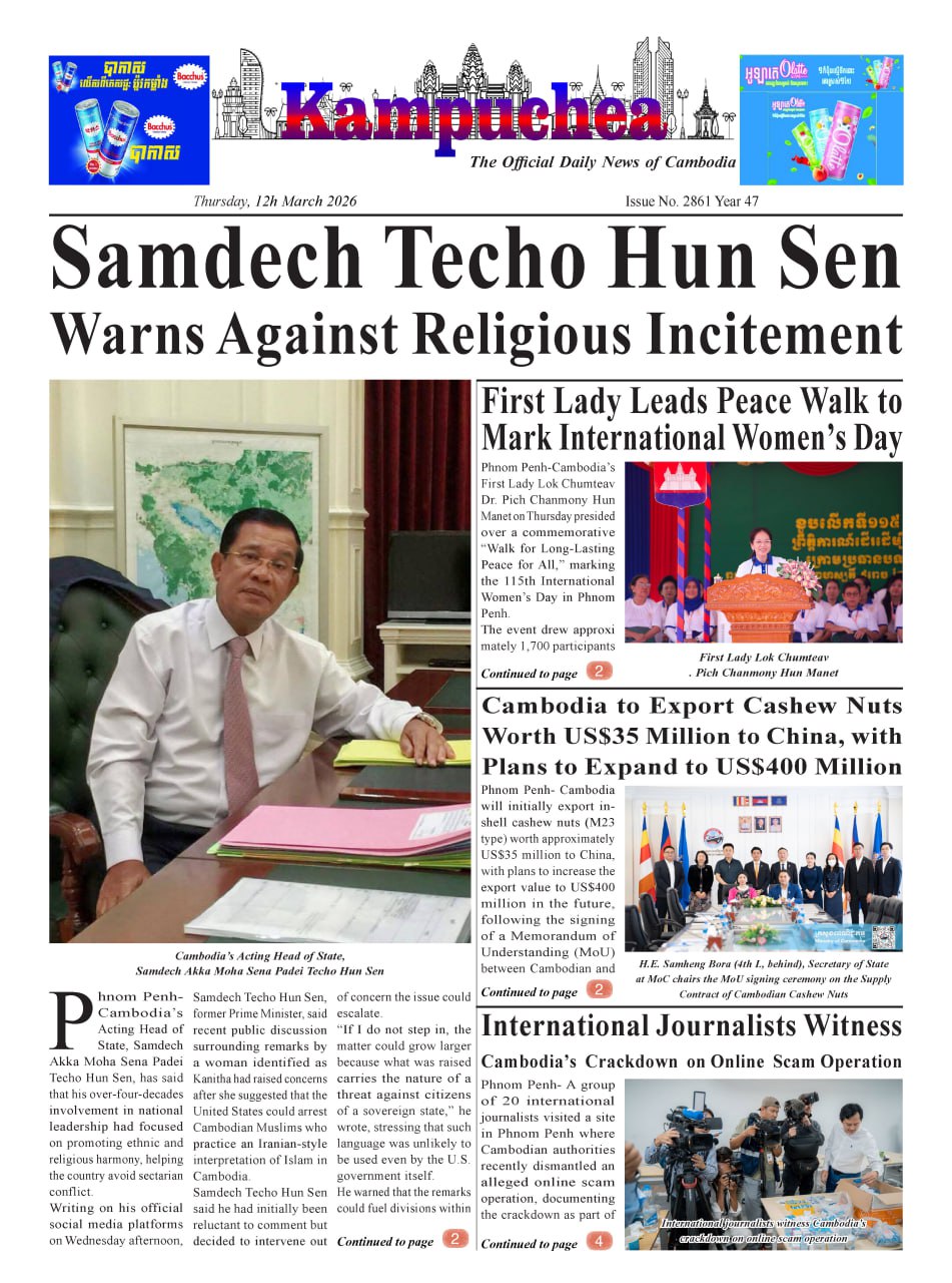 Kampuchea Newspaper on Thursday, March 12, 2026