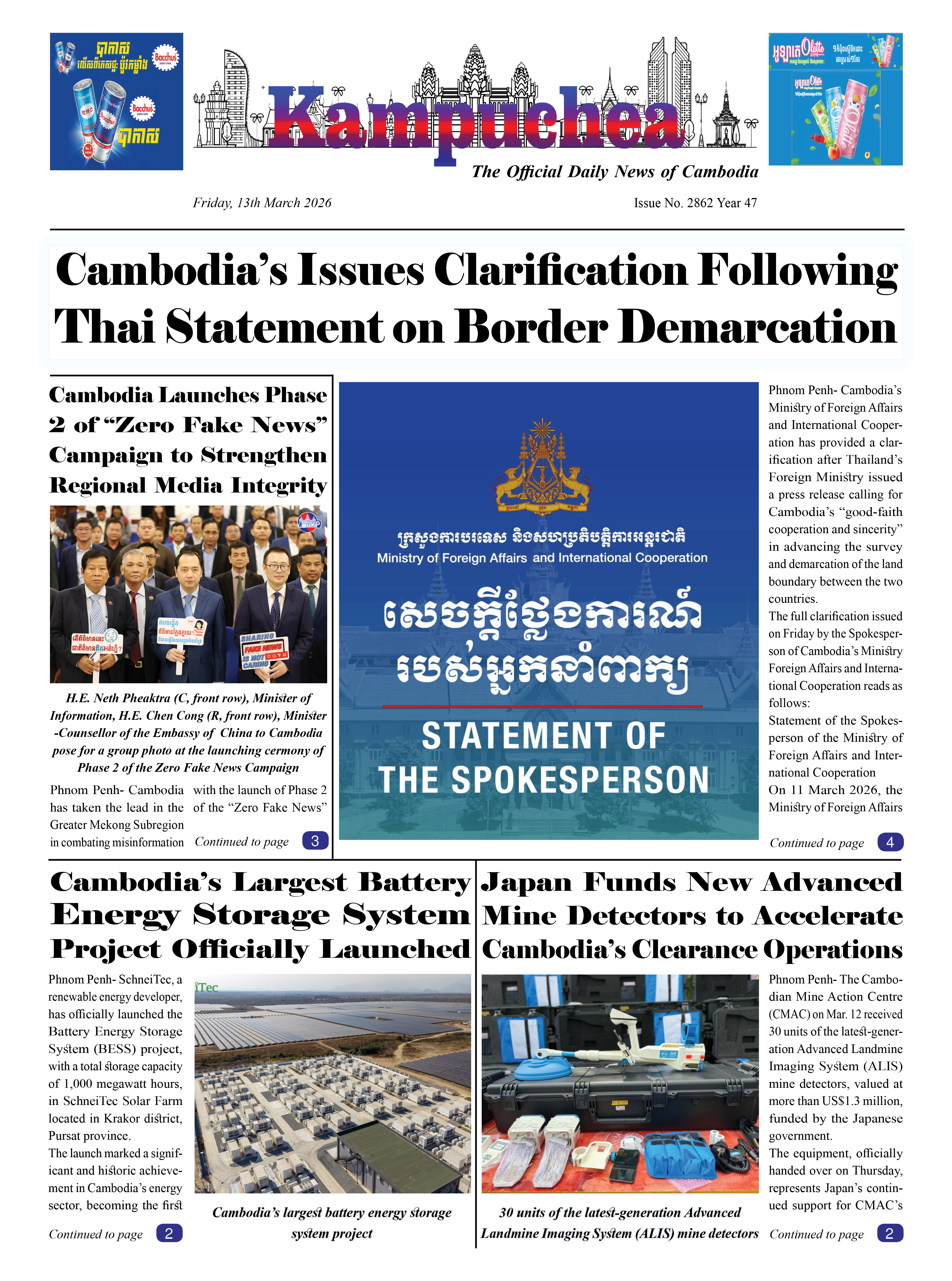 Kampuchea Newspaper on Friday, March 13, 2026