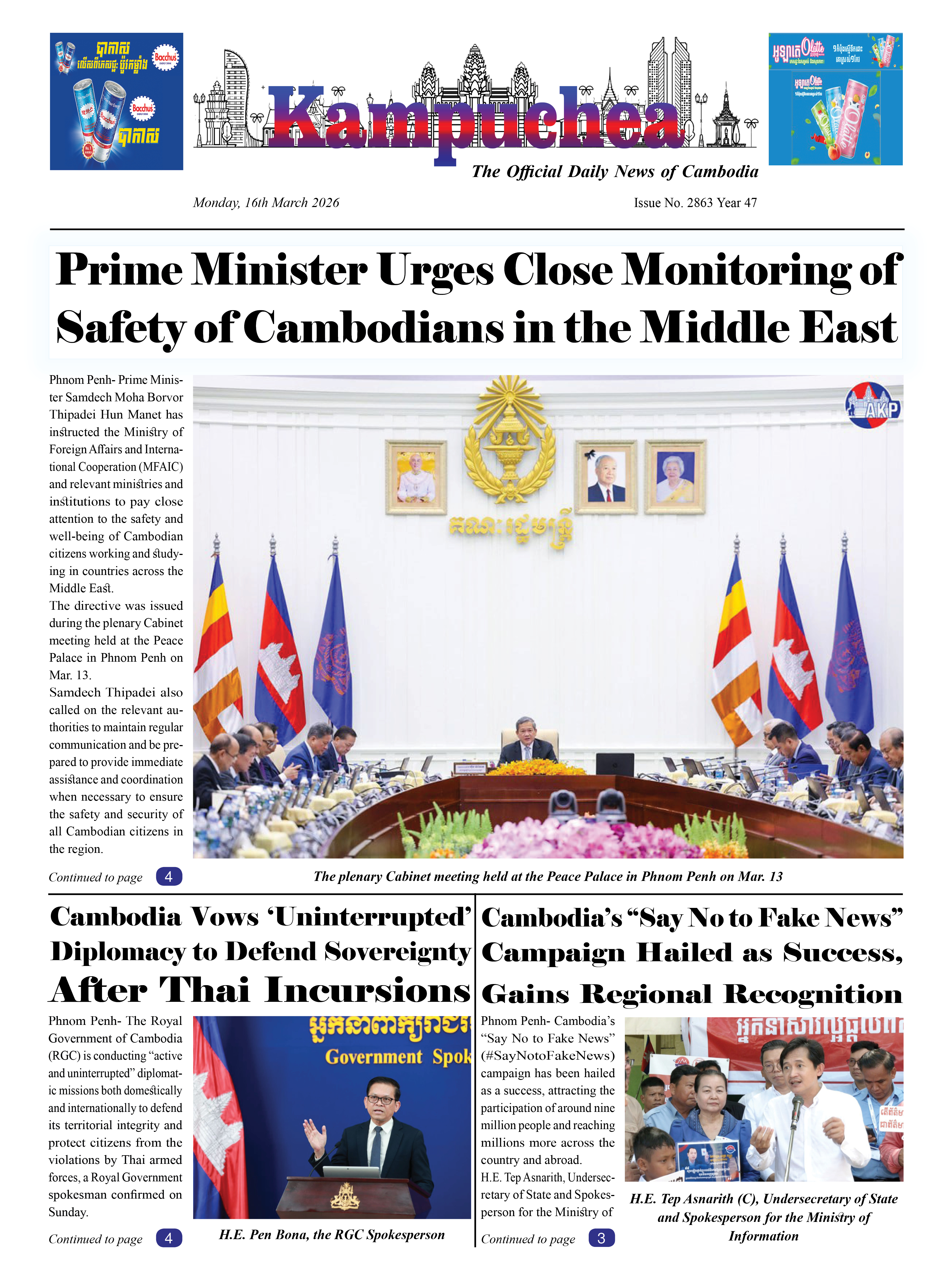 Kampuchea Newspaper on Monday, March 16, 2026
