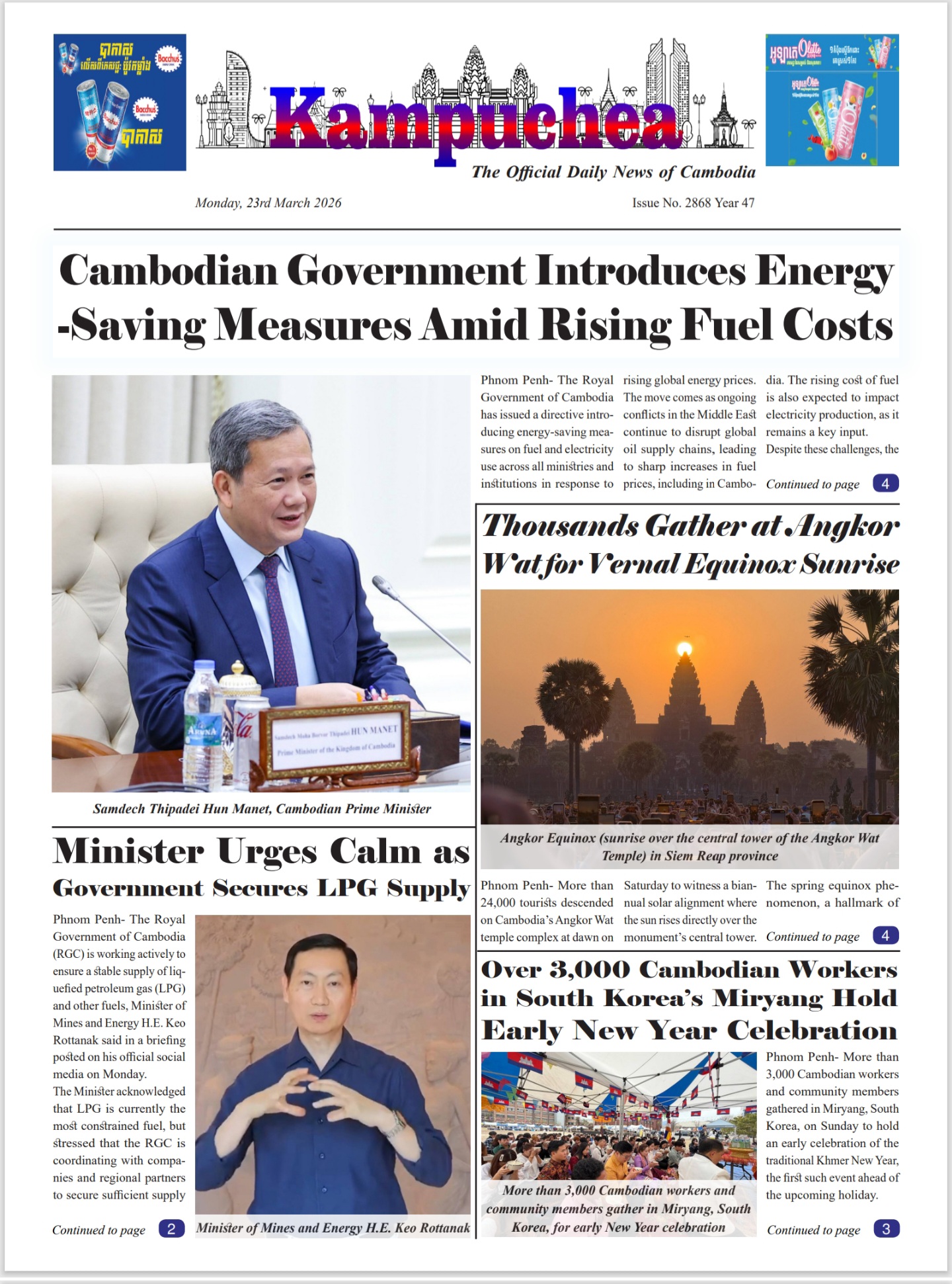 Kampuchea Newspaper on Monday, March 23, 2026