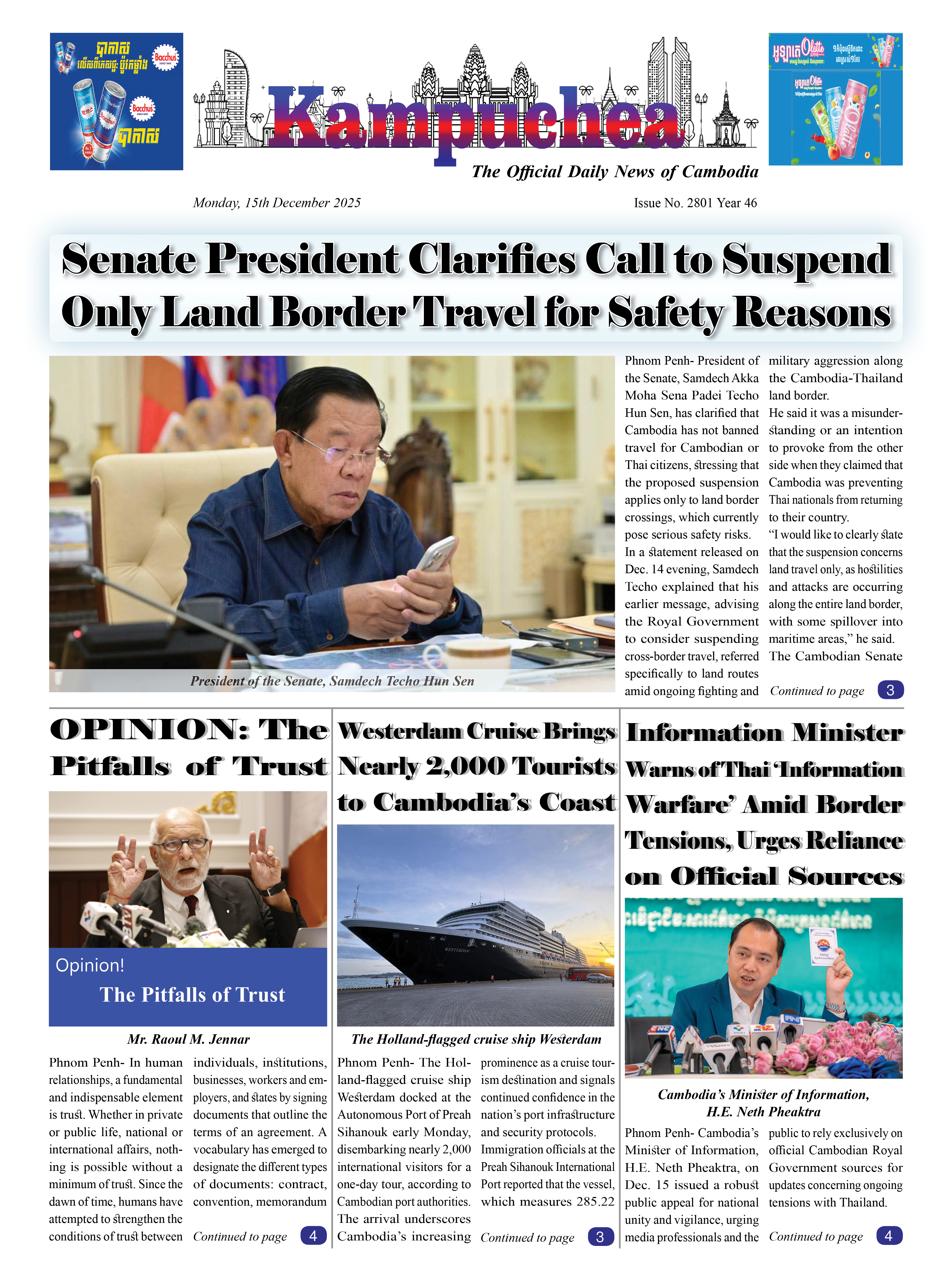 Kampuchea Newspaper on Monday, December 15, 2025