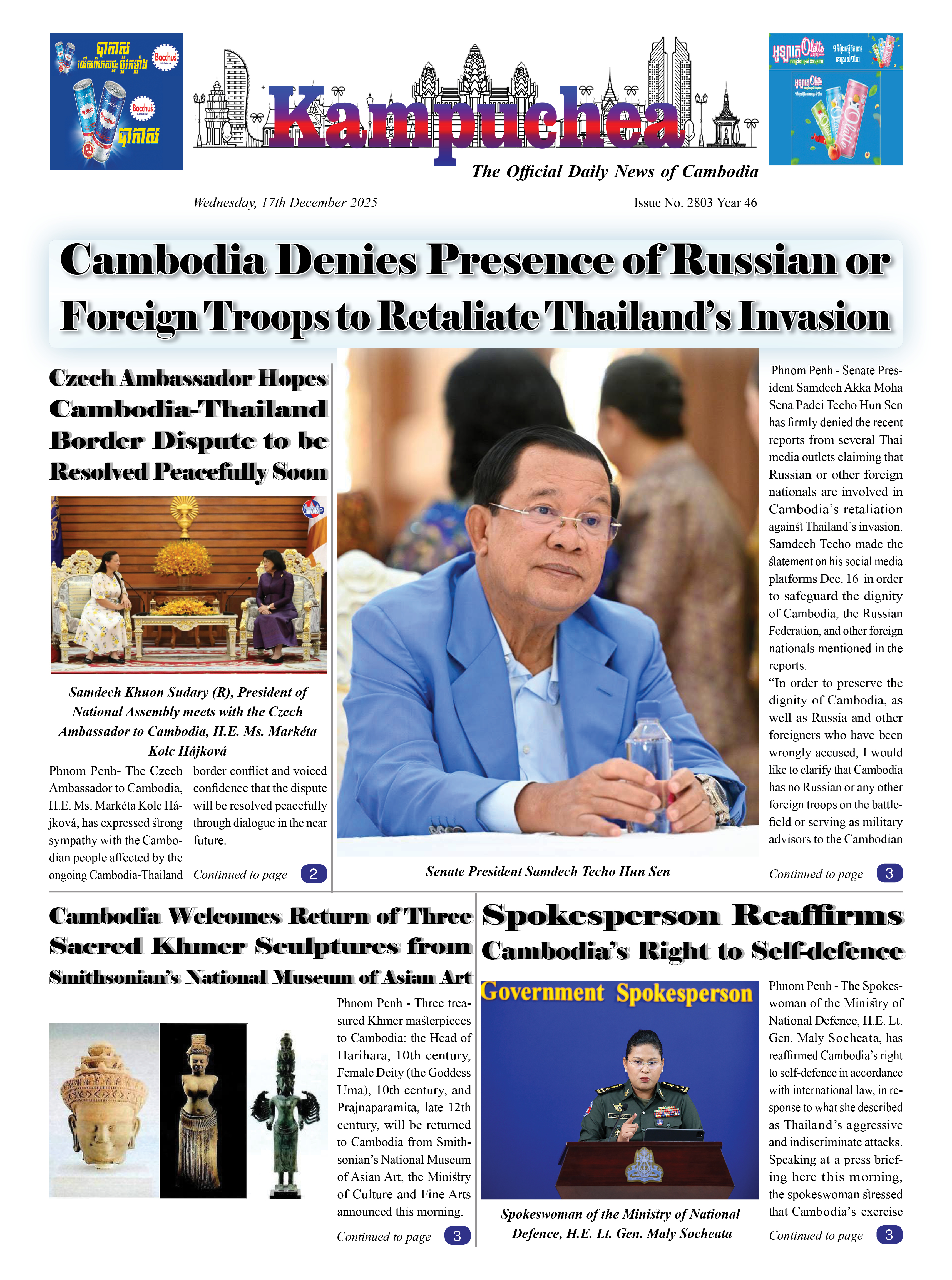 Kampuchea Newspaper on Wednesday, December 17, 2025