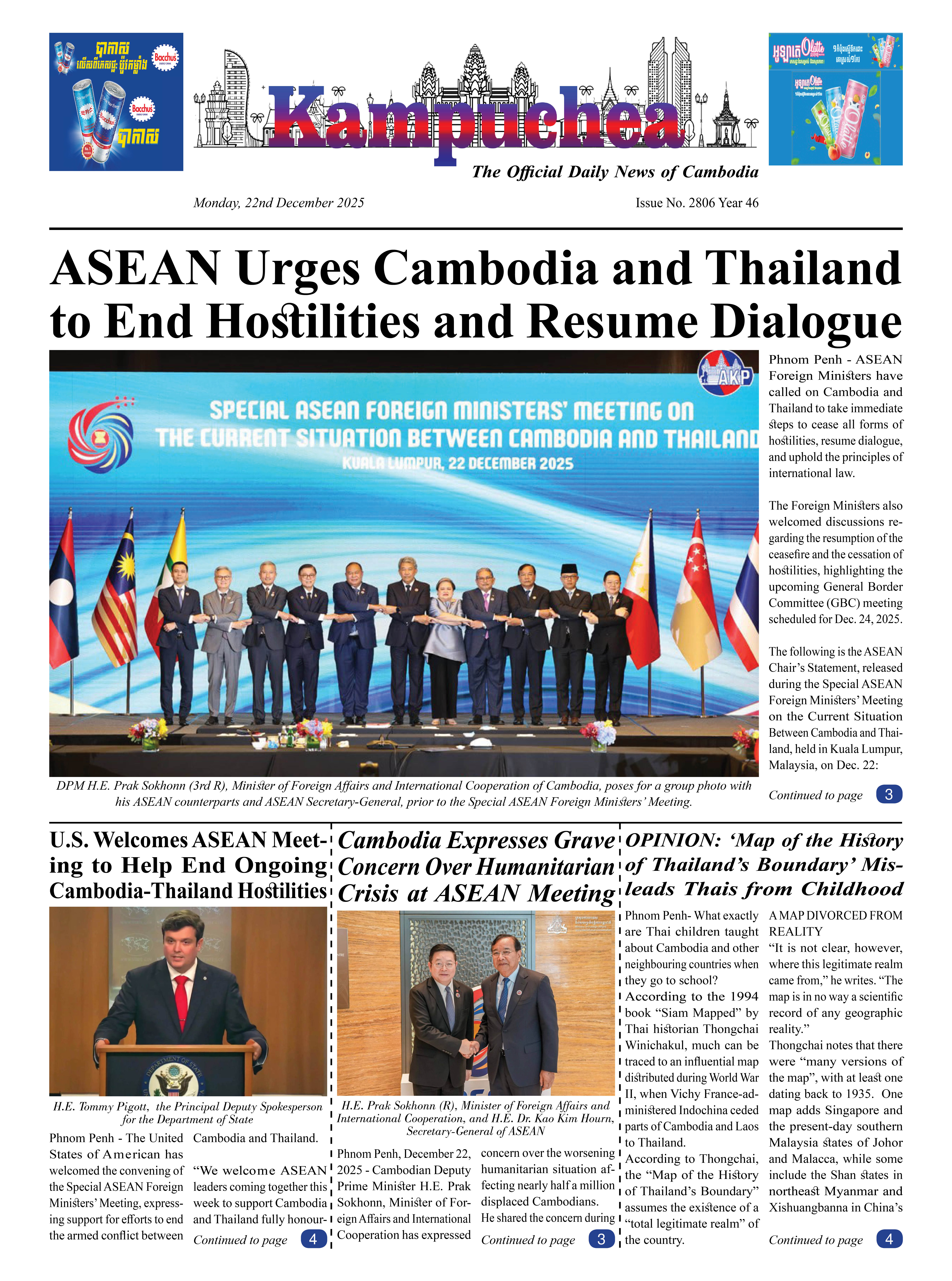 Kampuchea Newspaper on Monday, December 22, 2025