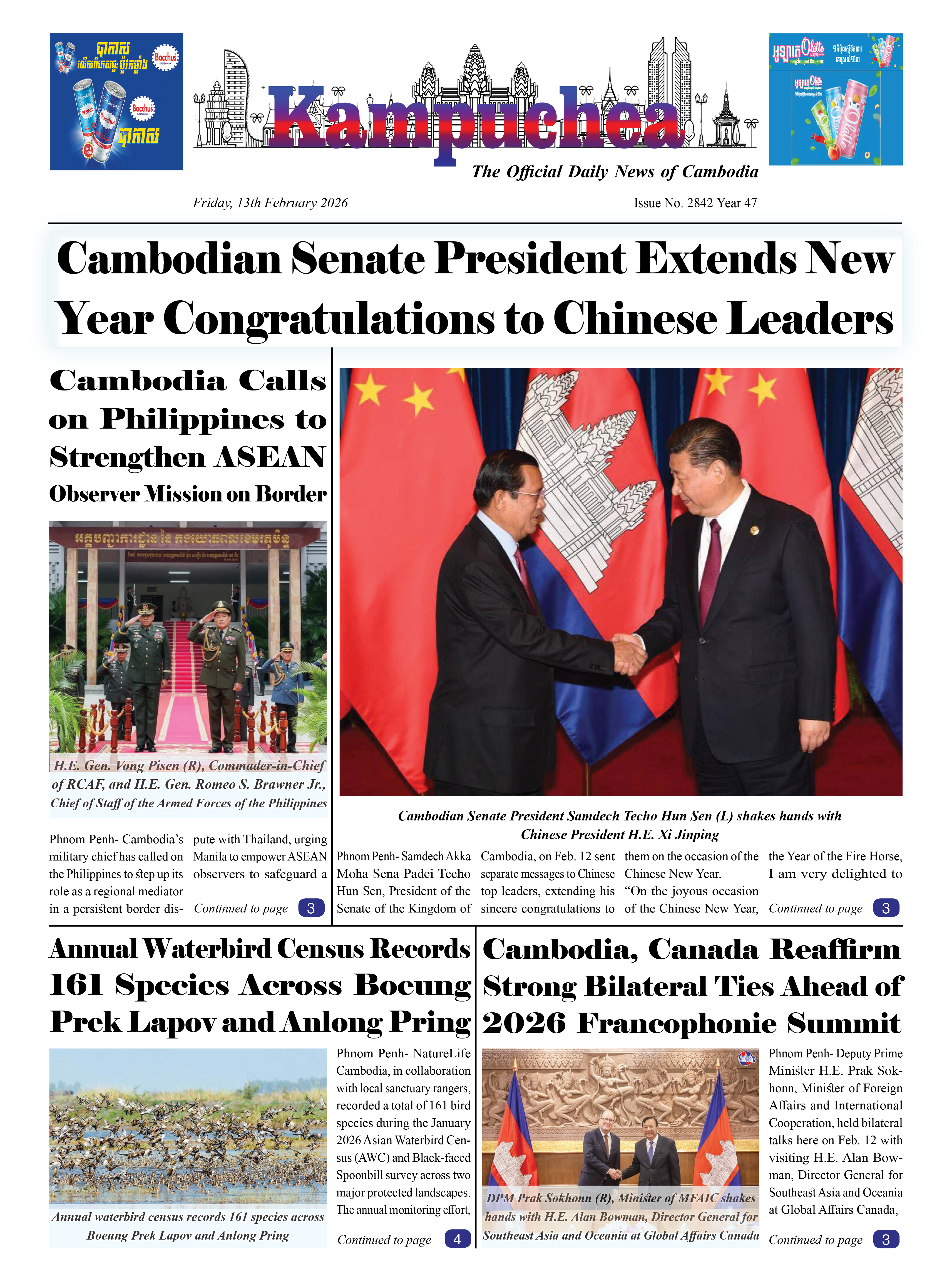 Kampuchea Newspaper on Friday, February 13, 2026