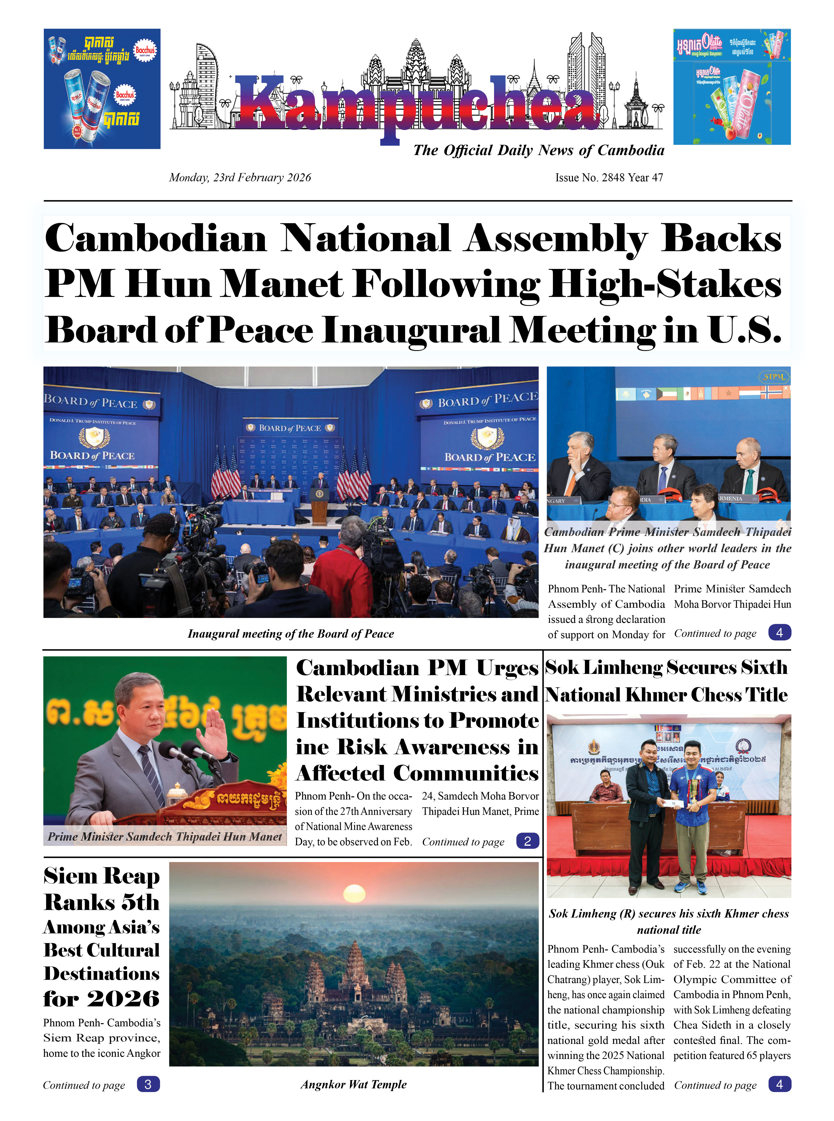 Kampuchea Newspaper on Monday, February 23, 2026