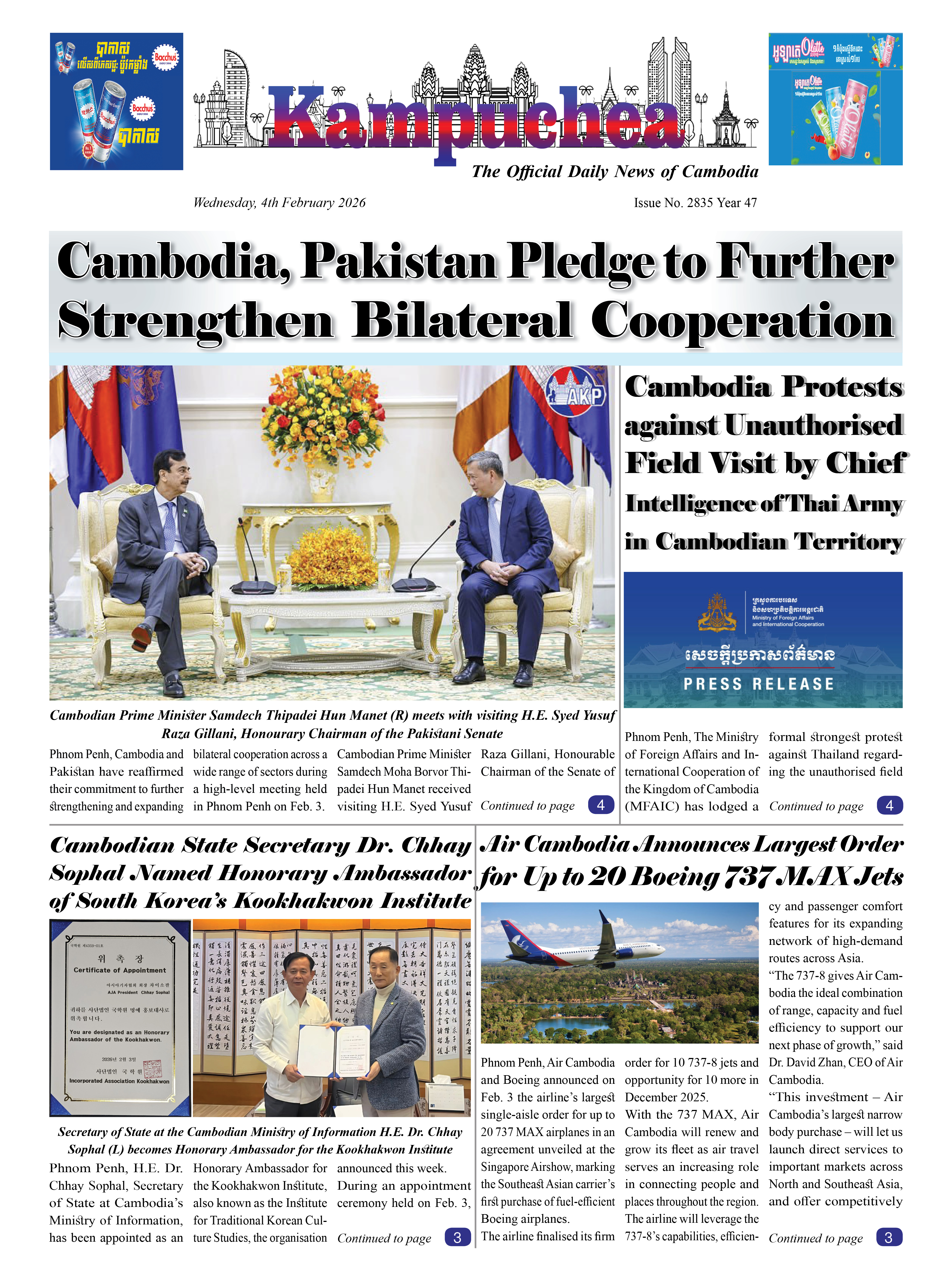Kampuchea Newspaper on Wednesday, February 04, 2026