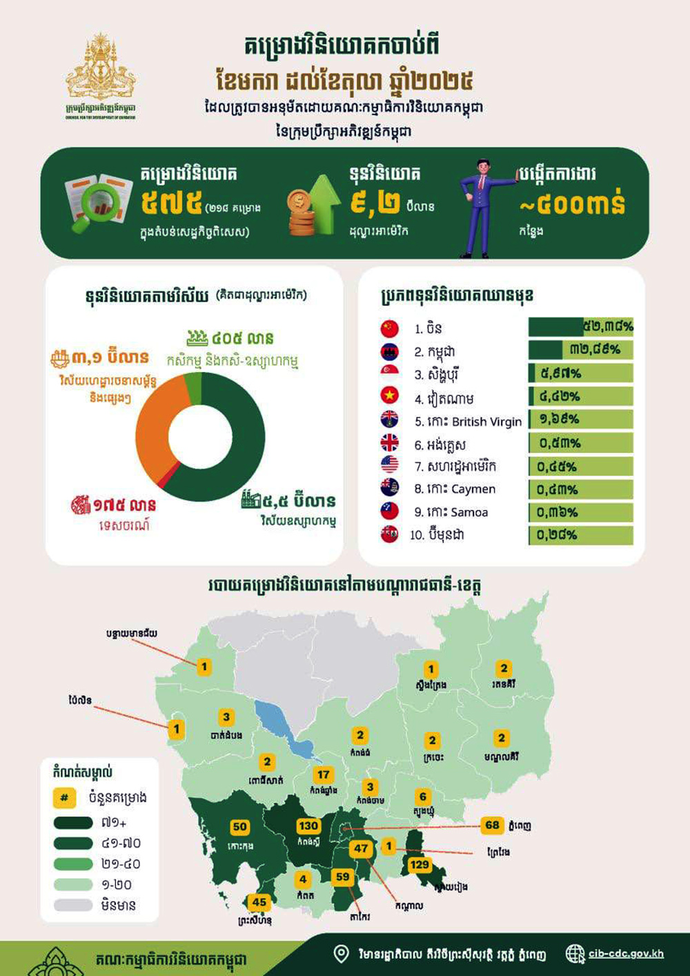 AKP Phnom Penh, November 07, 2025 -- Cambodia approved a total of 575 investment projects between January and October of 2025, up 66 percent from 346 projects in the same period last year, according to a report from the Council for the Development of Cambodia (CDC) released on Friday. The appr...
