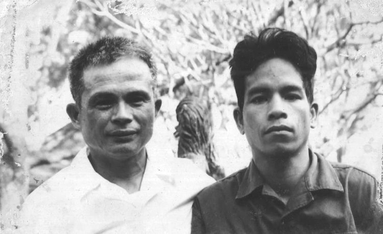 Brao revolutionary leader Bun Mi (left) with Vietnamese advisor Thanh Van in the central Vietnamese city of Danang in 1978. Bun Mi was one of the 14 leaders of the United Front for the National Salvation of Kampuchea founded in 1978 to overthrow Pol Pot's forces. (Photo: Bou Thang)