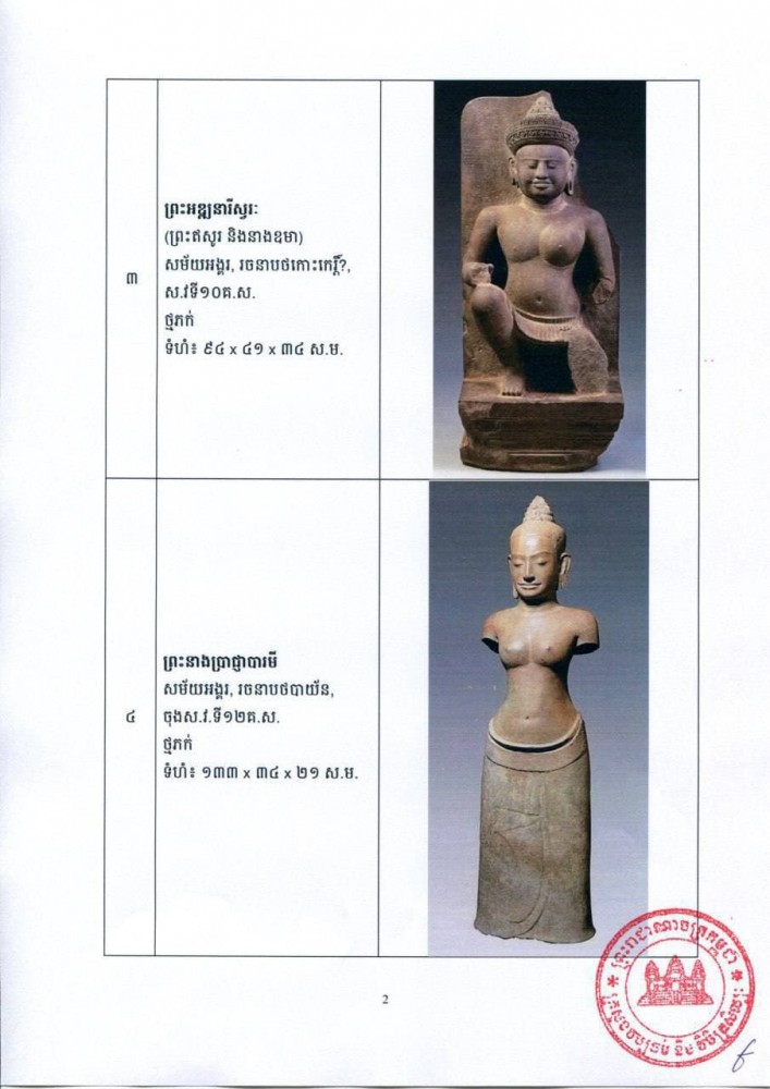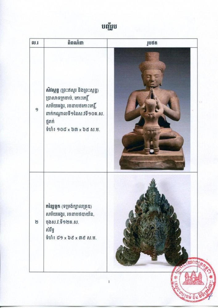 Ministry of Culture Confirms the Return of Khmer Cultural Objects