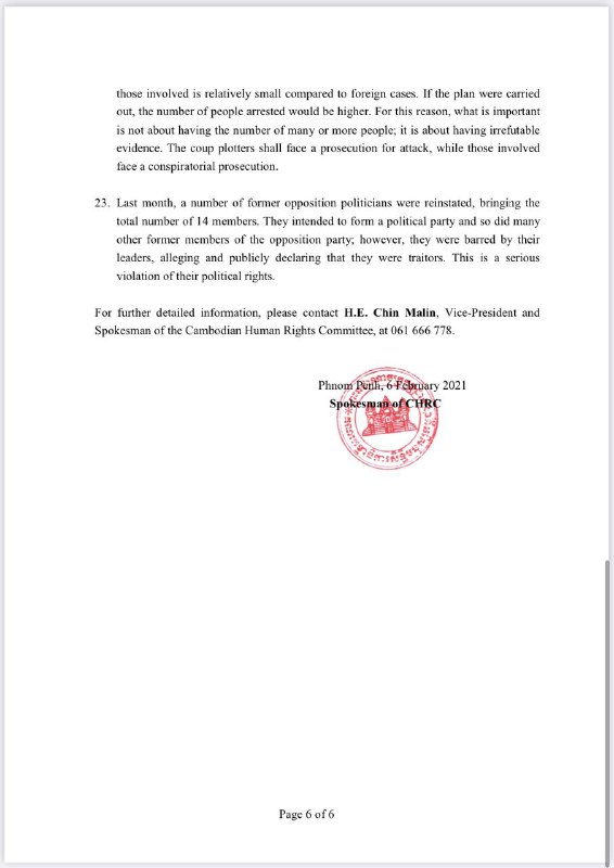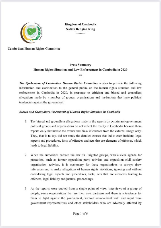 Press Summary on Human Rights Situation and Law Enforcement in Cambodia in 2020