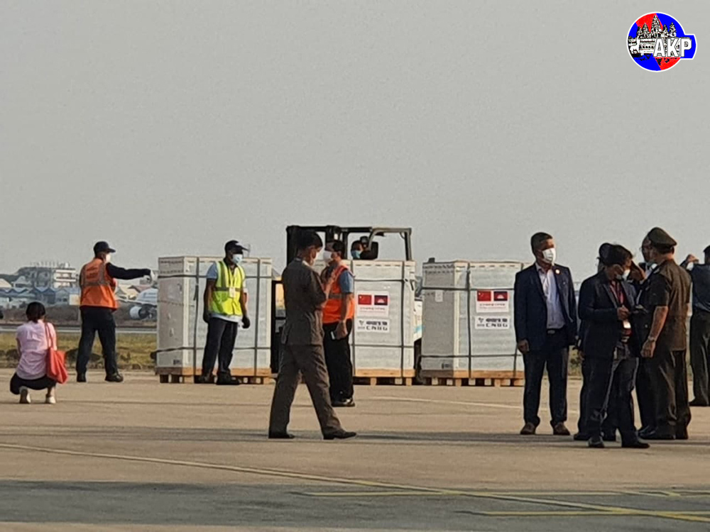 The first batch (600,000) of the one million doses of China-donated vaccine arrived at Phnom Penh International Airport this afternoon.