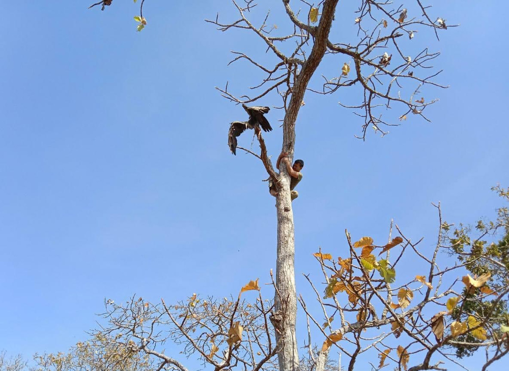 “This bird could fly only 15 metres high to perch on the tree at the edge of Trapeang. Rangers climbed the tree to help immediately, the bird was seriously injured on the right leg and weak,” it added.
