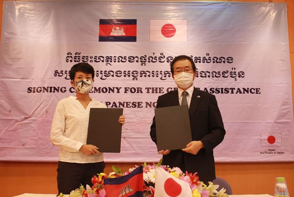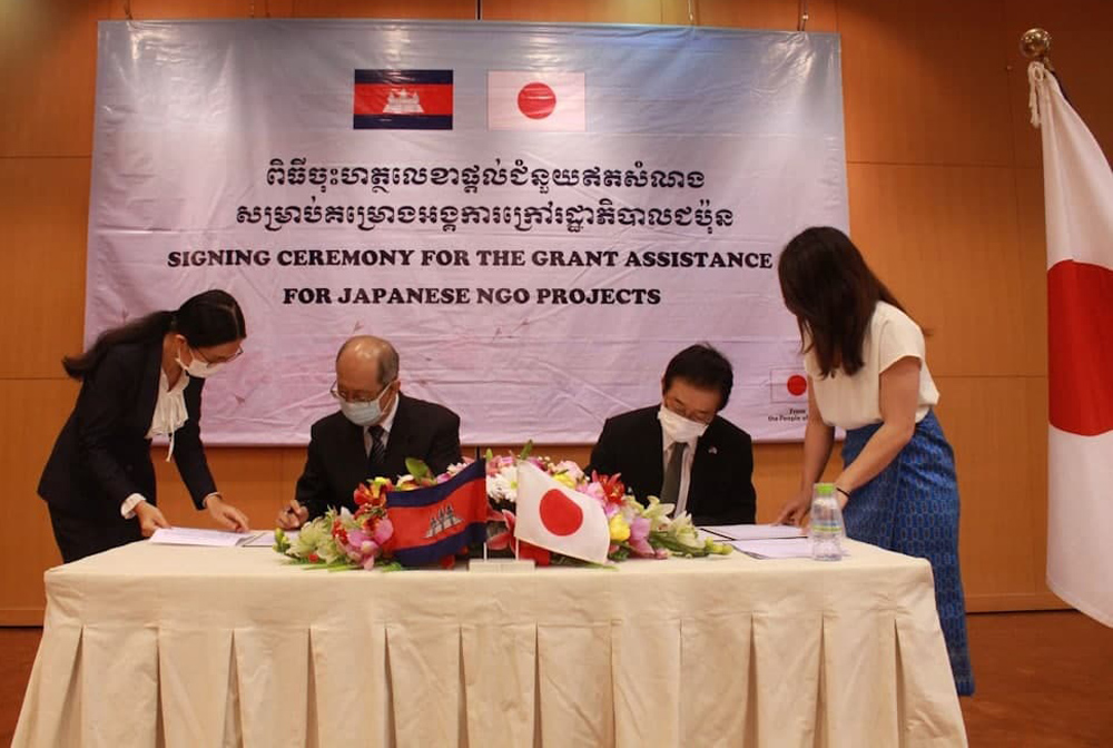 The Grant Contract was signed today between Japanese Ambassador to Cambodia H.E. Mikami Masahiro, and the representatives of recipient organisations, it added.