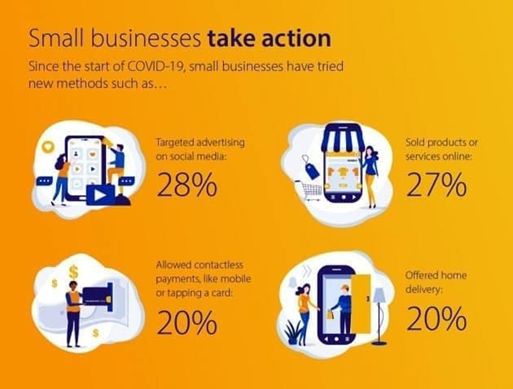 Businesses too have had to keep up. No one is immune to these changes and particularly for small businesses, the pandemic has been disruptive to their financial health. Indeed, temporary closures of non-essential businesses and prevailing social distancing guidelines have taken their toll on the sector. Amidst these challenging times, small businesses have demonstrated their resilience and adapted quickly. Over two-thirds (67%) of small businesses have tried a new approach to keep them on track since the start of COVID-19. More than a quarter (28%) have started to do targeted advertising on social media, followed by selling products or services online (27%), allowing contactless payments such as mobile or tapping a card (20%) and offering home delivery (20%).