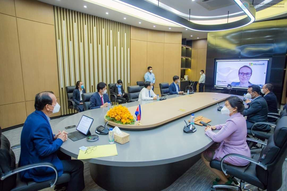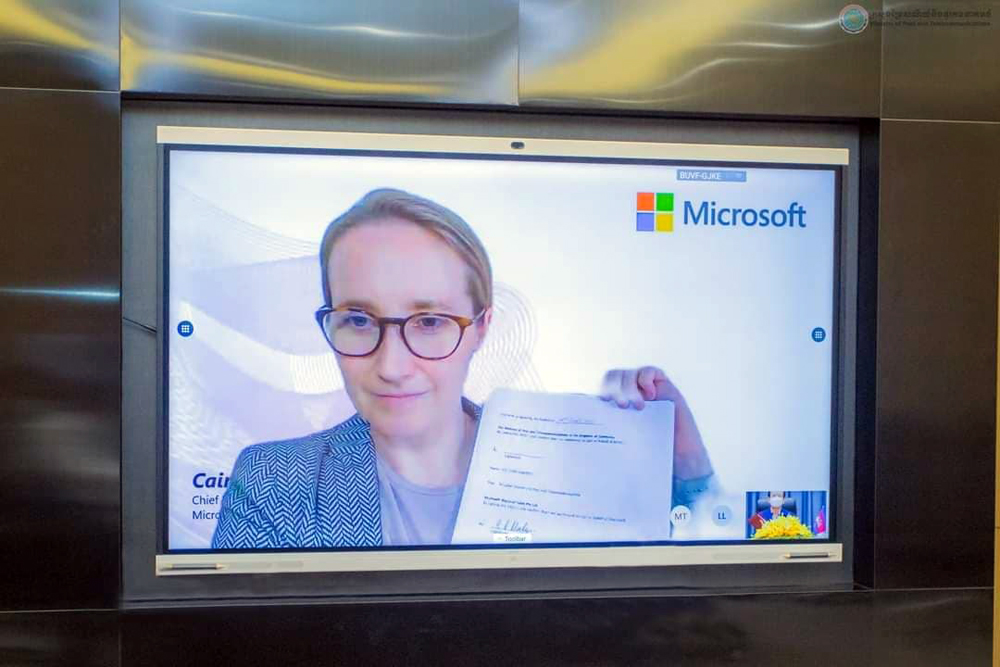 The two sides signed virtually on Mar. 16 a memorandum of understanding on the cooperation on human development and promotion of digital usage in Cambodia by Cambodian Minister of MPTC H.E. Chea Vandeth and Ms. Cairine Haslam, CFO, Singapore and South East Asia New Markets at Microsoft.