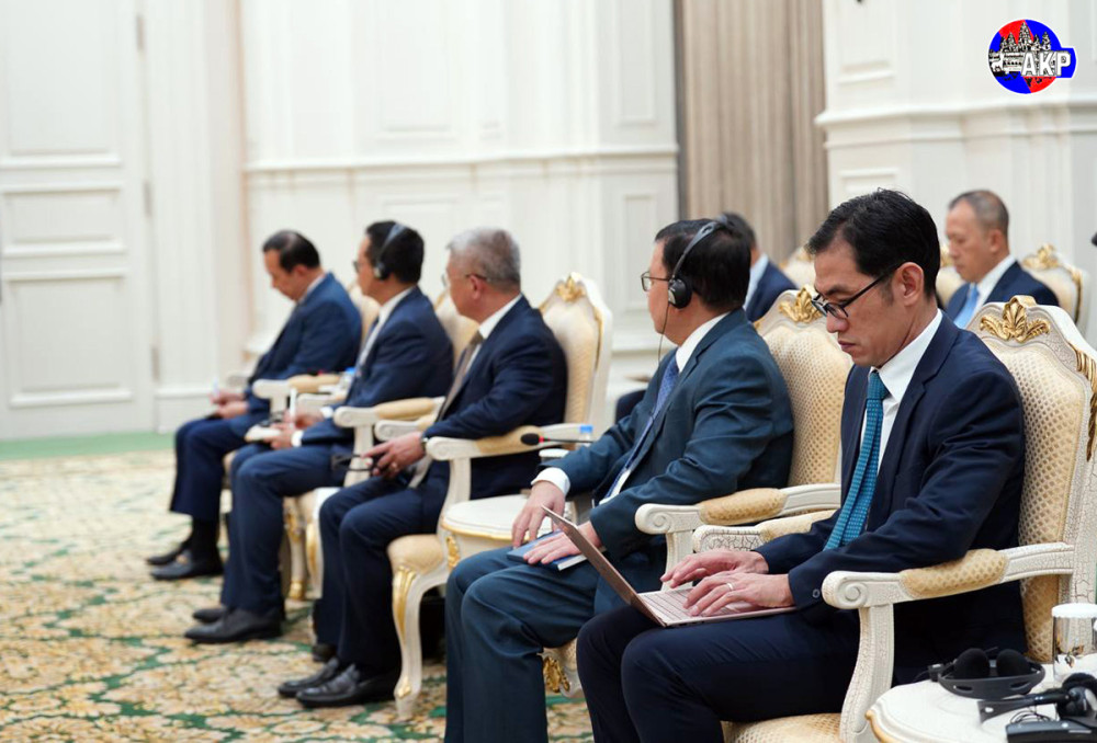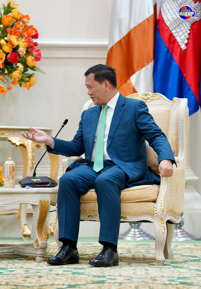 Samdech Moha Borvor Thipadei Hun Manet (R, Pic. 1), Prime Minister of the Kingdom of Cambodia, receives a courtesy call on from Mr. Keith Magnus, Chairman of Evercore’s Asia business and his accompanied colleagues, at the Peace Palace here this afternoon.