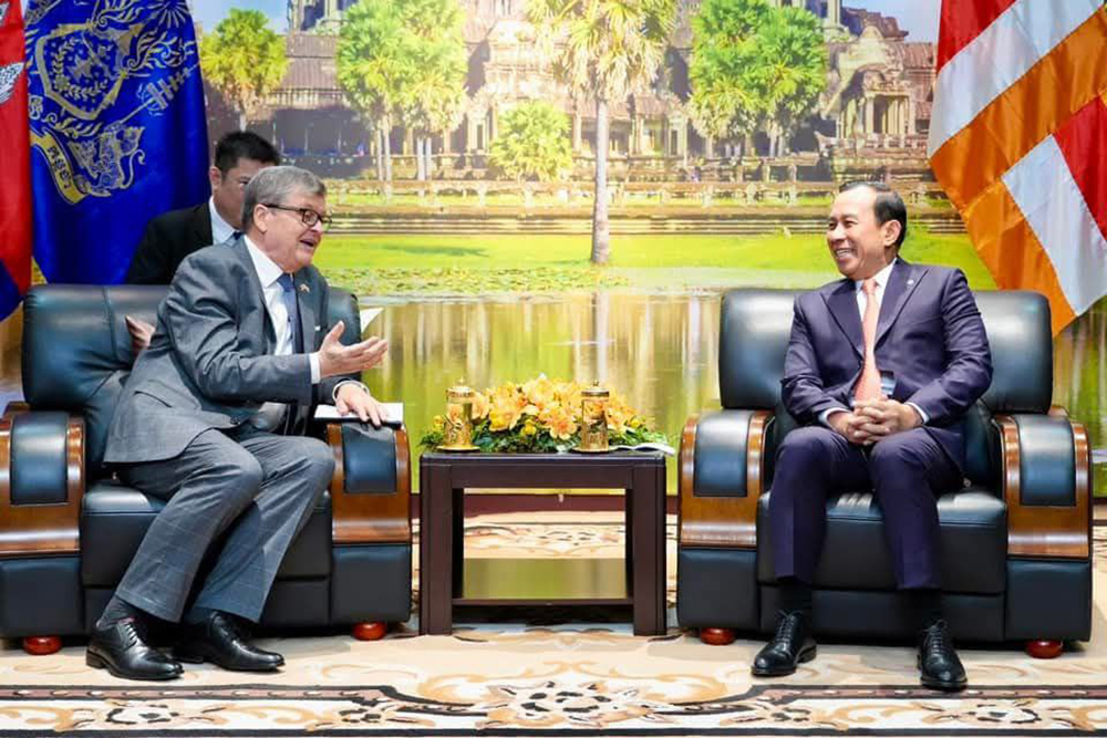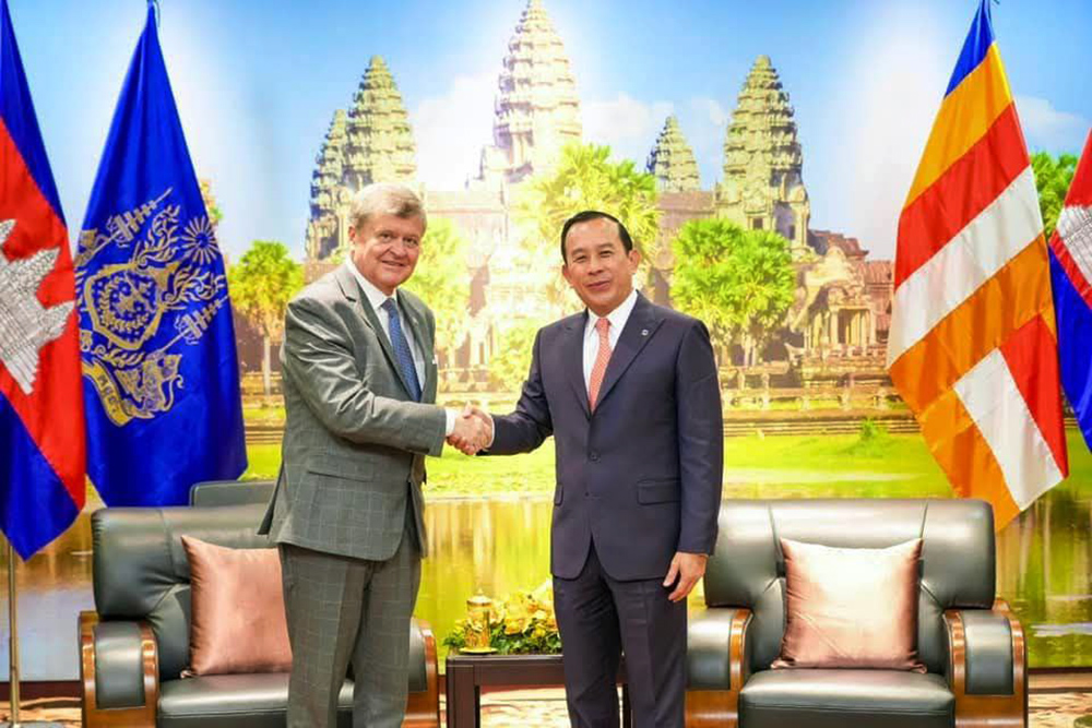 Cambodia’s Minister of Tourism H.E. Huot Hak (R, Pic. 1) shakes hands with H.E. Anatoly Borovik, Ambassador Extraordinary and Plenipotentiary of the Russian Federation to the Kingdom of Cambodia, prior to their courtesy meeting at the ministry’s office here this morning.