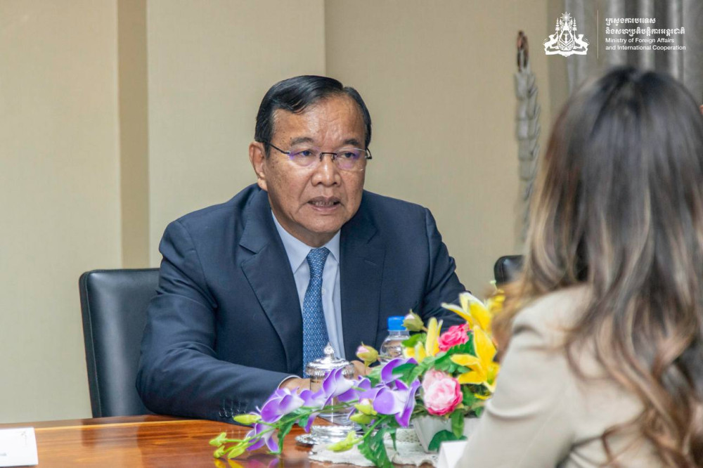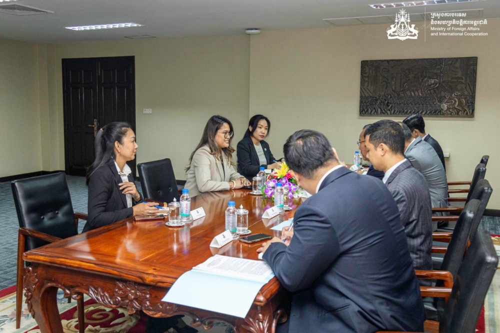 H.E. Deputy Prime Minister Prak Sokhonn (Pic. 1), Minister of Foreign Affairs and International Cooperation of the Kingdom of Cambodia, receives a courtesy call by Ms. Buth Rothna, Executive Director of the ASEAN Regional Mine Action Centre (ARMAC), at the ministry’s office here on Jan. 15.