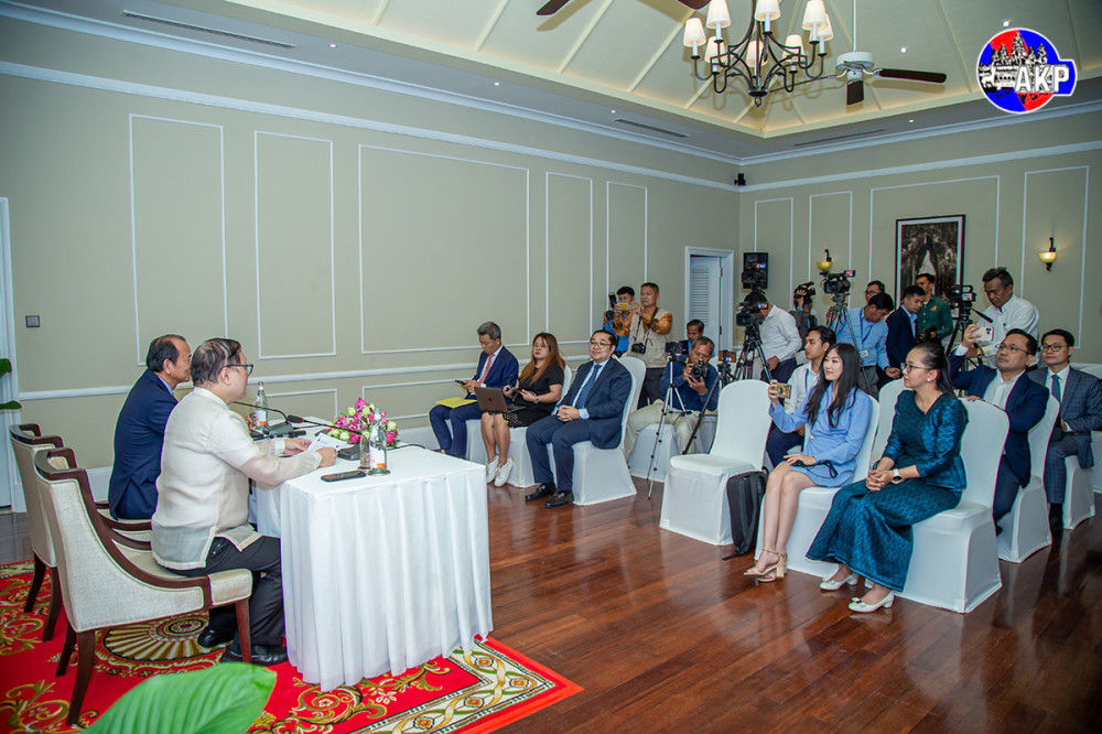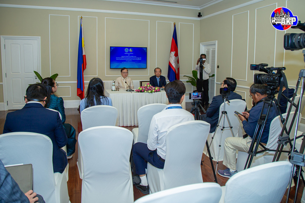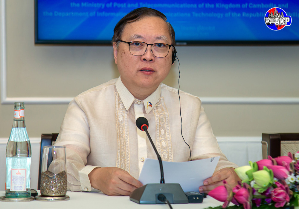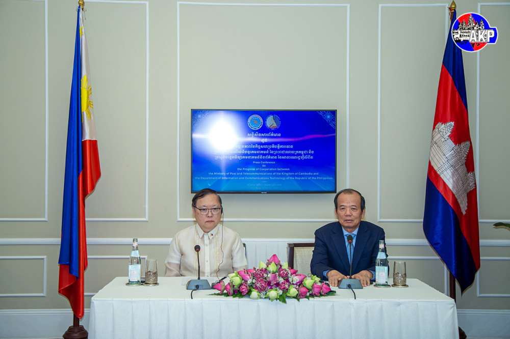 H.E. Chea Vandeth (R, Pic. 1), Minister of Posts and Telecommunications of the Kingdom of Cambodia (MPTC), and H.E. Ivan John E. Uy, Secretary of the Department of Information and Communications Technology of the Republic of the Philippines (DICT), hold a joint press conference on “Progress of Cooperation between the MPTC and DICT, held at the Raffles Grand Hotel d’Angkor, Siem Reap, this evening.