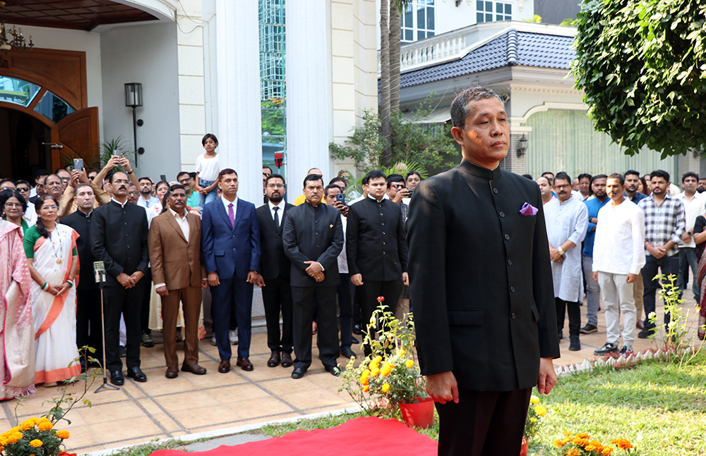 According to the embassy’s press release, the celebration began with the unfurling of the National Flag by the Ambassador-designate of the Republic of India to the Kingdom of Cambodia, H.E. Vanlalvawna Bawitlung, followed by the singing of the National Anthem of India. H.E. Ambassador, thereafter, read out the address of the Hon’ble President of India to the nation.