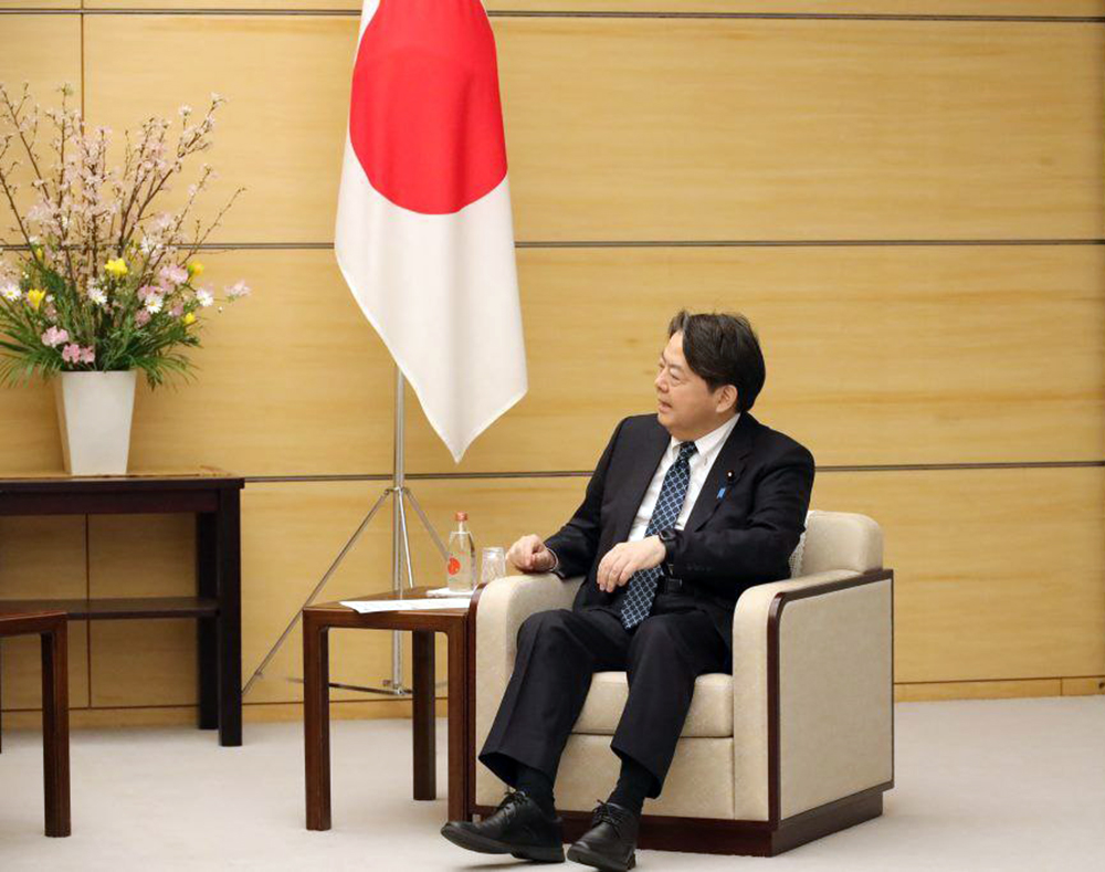 H.E. Vongsey Vissoth (L, Pic. 1), Permanent Deputy Prime Minister and Minister in Charge of the Office of the Council of Ministers of the Kingdom of Cambodia, shakes hands with H.E. Hayashi Yoshimasa, Chief Cabinet Secretary of Japan, prior to their meeting in Tokyo on Feb. 4 afternoon.