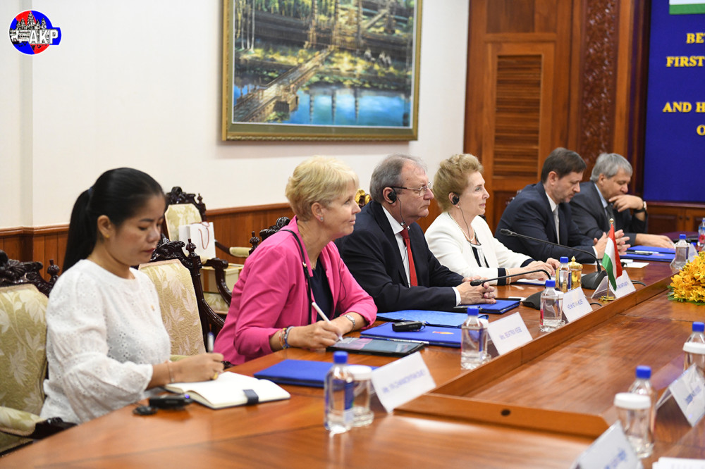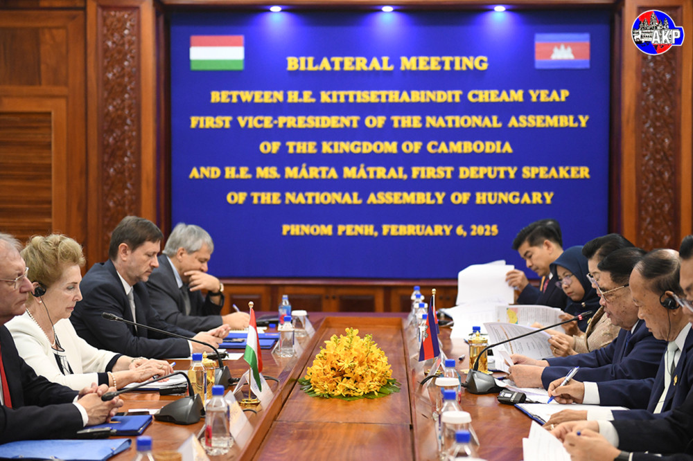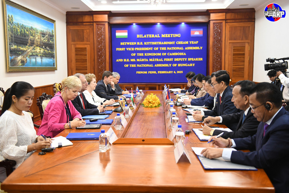 H.E. Kitti Sethapundit Cheam Yeap (Pic. 1), First Vice President of the National Assembly of the Kingdom of Cambodia, holds a bilateral meeting with H.E. Mrs. Marta Matrai, First Deputy Speaker of the National Assembly of Hungary, at the National Assembly Palace here this morning.
