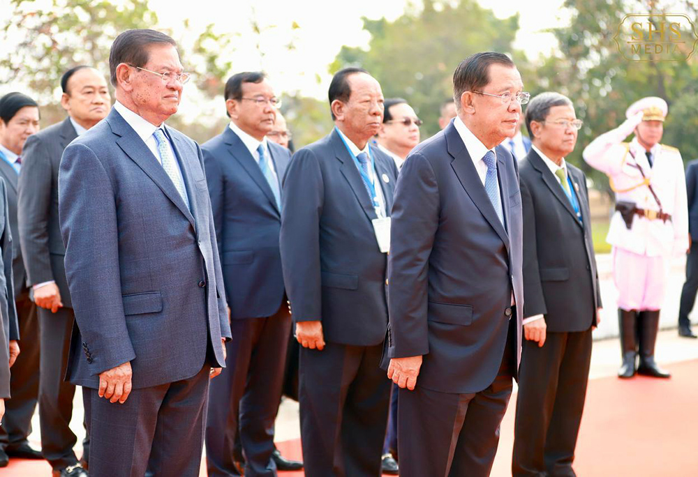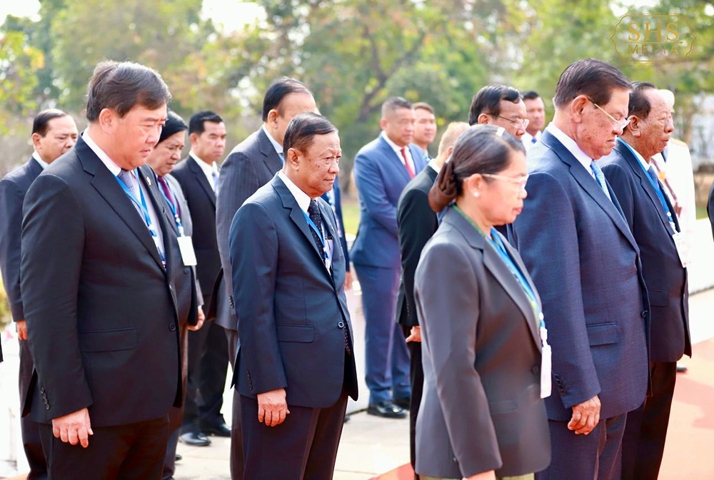 Samdech Akka Moha Sena Padei Techo Hun Sen, President of the Senate of the Kingdom of Cambodia and President of the ruling Cambodian People’s Party (CPP), lays a wreath at the Monument of Unknown Soldiers in Vientiane this morning, as part of his two-day official visit in Laos.